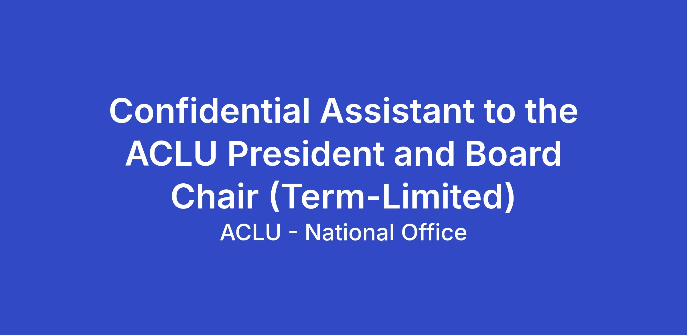 The ACLU seeks applicants for the full-time position of Confidential Assistant to the ACLU President to serve a two-year, term-limited role supporting the ACLU President who chairs the ACLU Board of Directors. This role is eligible for remote work based out of a United States location.
