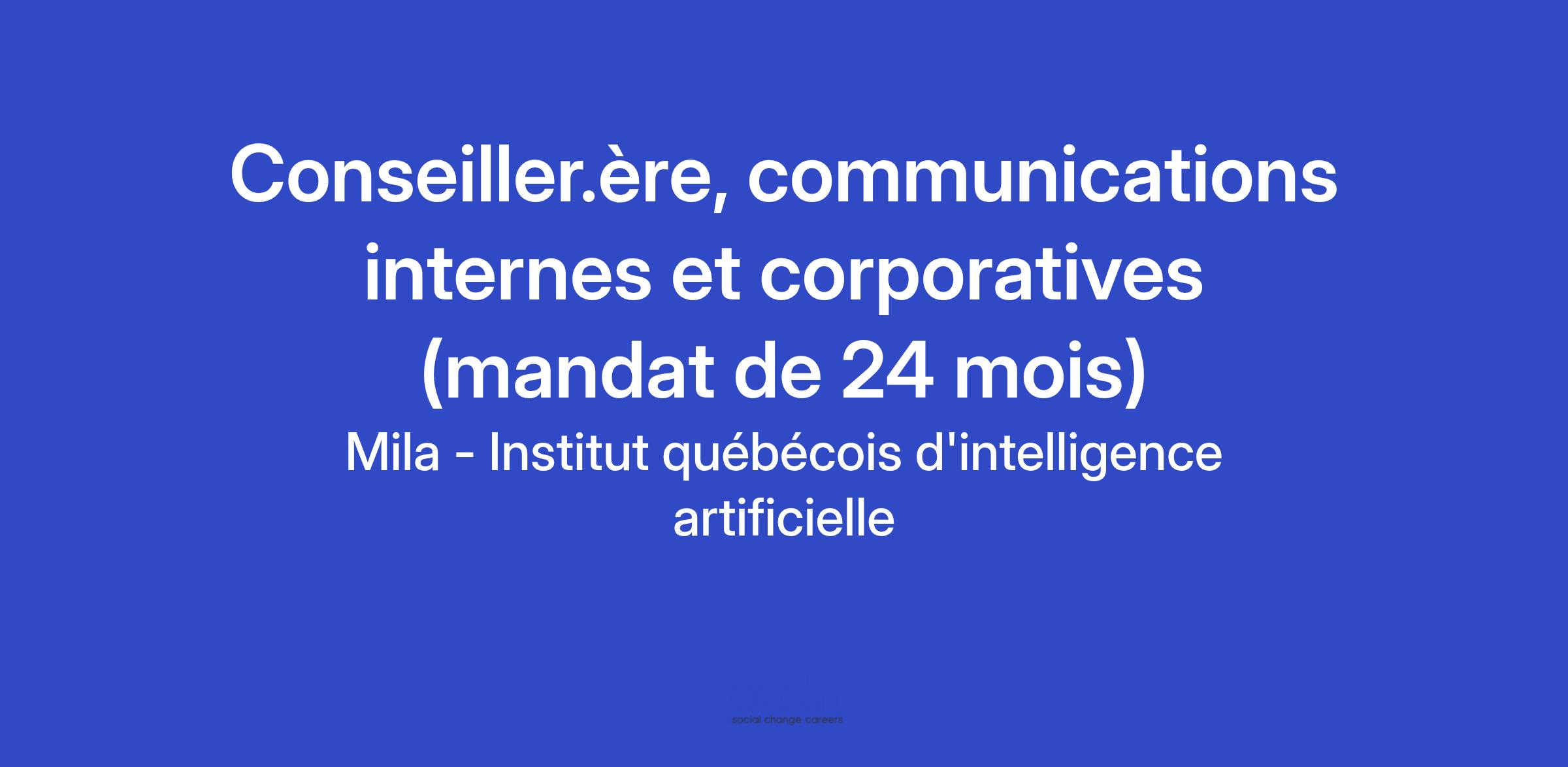 Mila is looking for a versatile, rigorous individual with remarkable writing skills to support the implementation of its internal and corporate communication strategies. As a communications advisor, you will contribute to the visibility of our initiatives with our most important audiences while producing strategic content for our platforms.