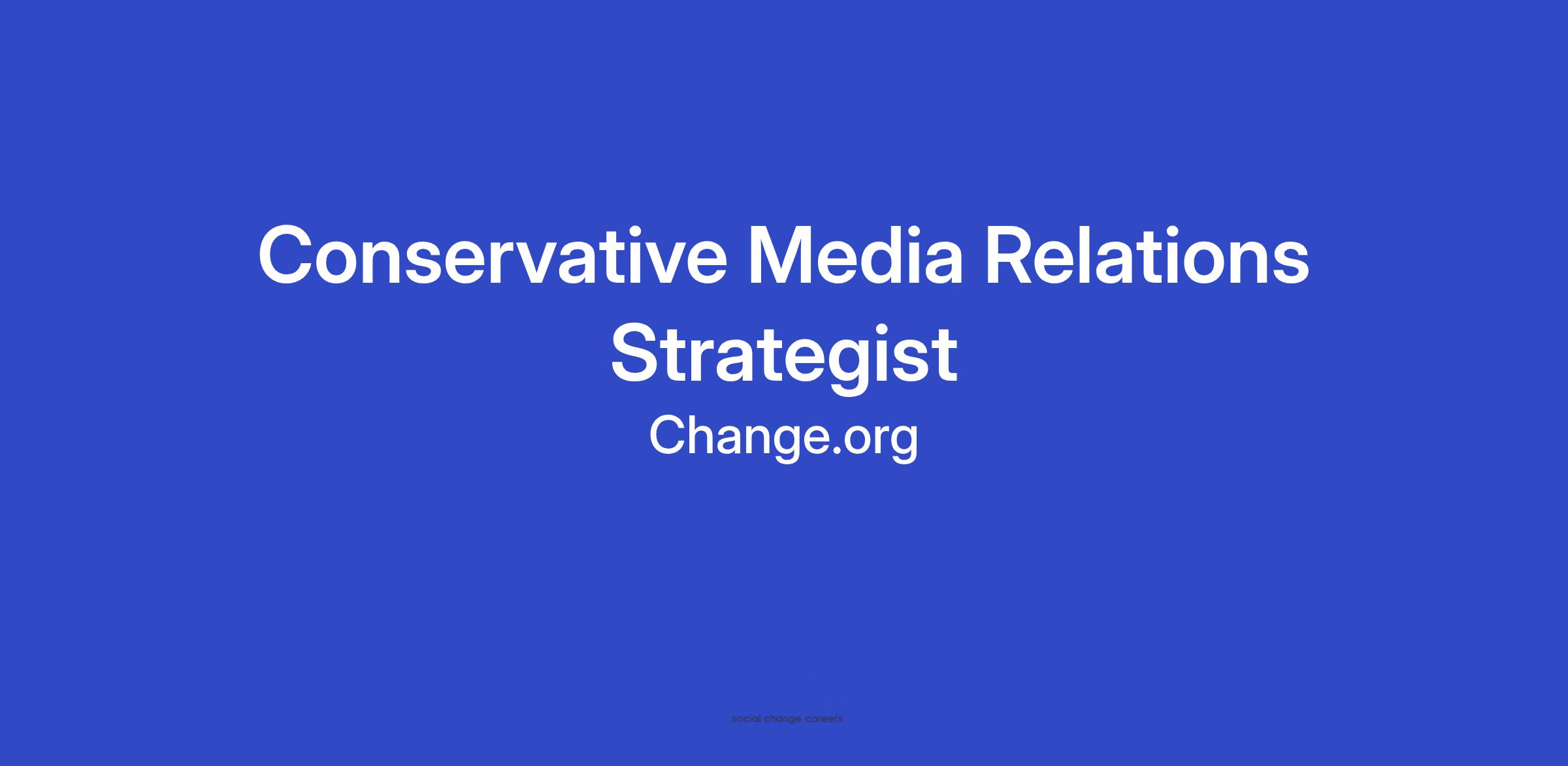 Change.org is searching for a Conservative Media Relations Strategist to build and promote Change.org campaigns and our organizational strategy with conservative media. You will elevate the message and stories that drive brand awareness and affinity with key conservative audiences, including top tier conservative editors, producers, bookers, journalists, writers, podcast hosts and influencers