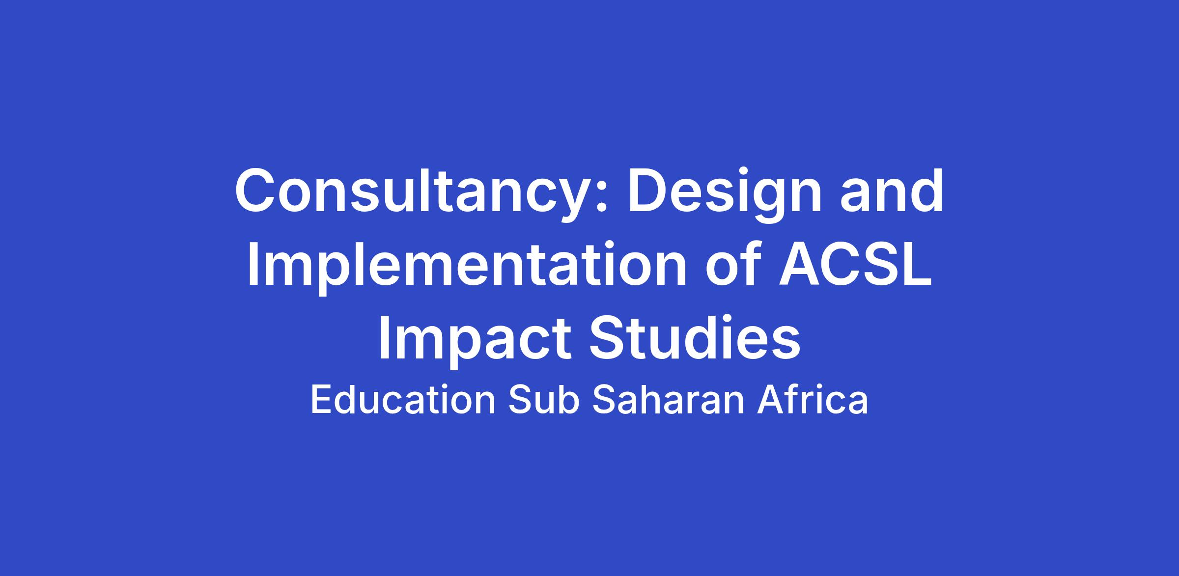 POST TITLE: Consultancy: Design and Implementation of ACSL Impact Studies