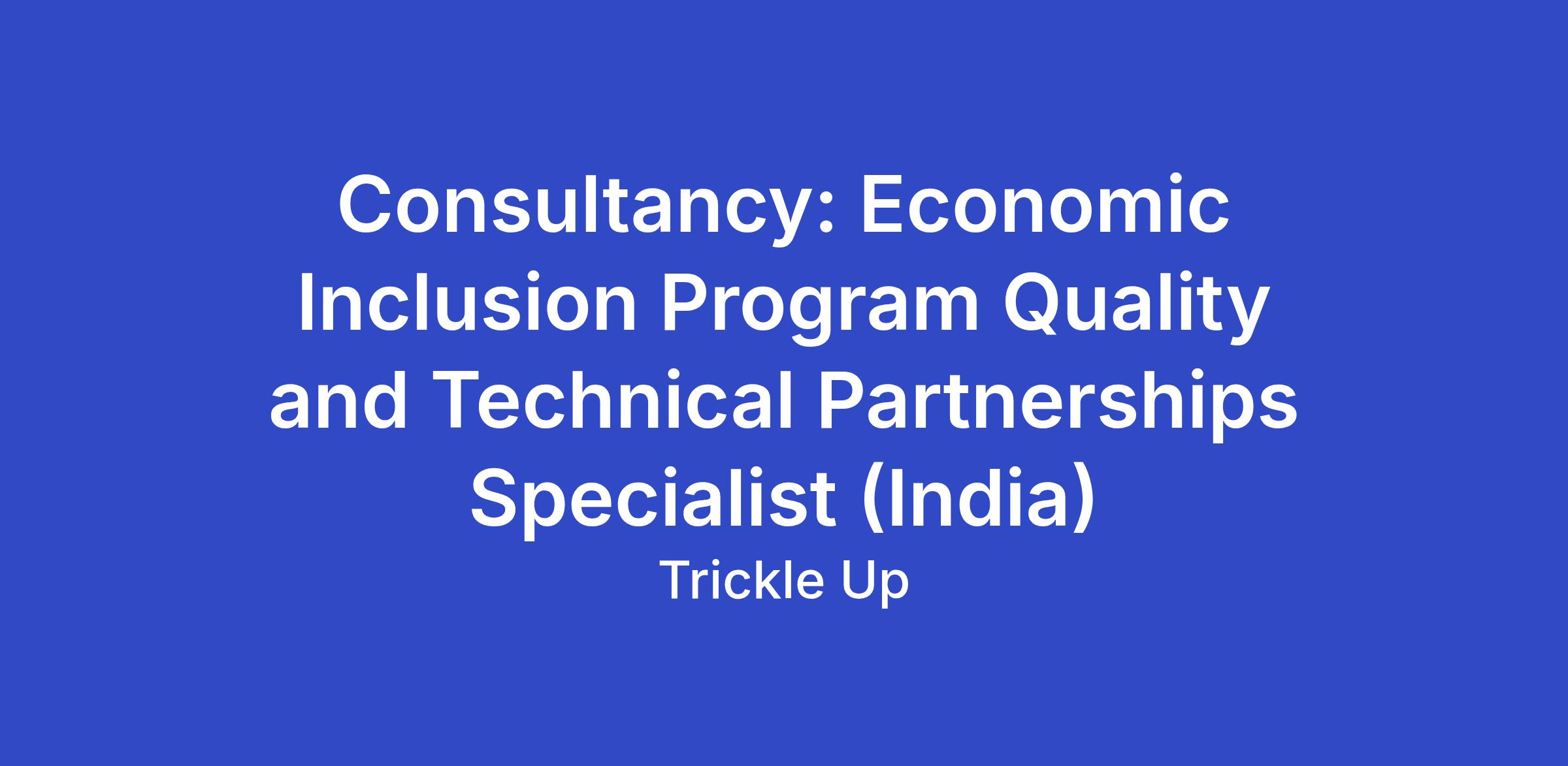 Title: Consultancy: Economic Inclusion Program Quality and Technical Partnerships Specialist (India)