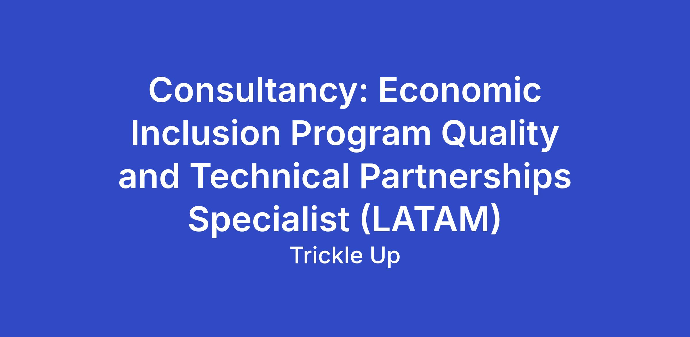 Title: Economic Inclusion Program Quality and Technical Partnerships Specialist, LATAM Consultancy