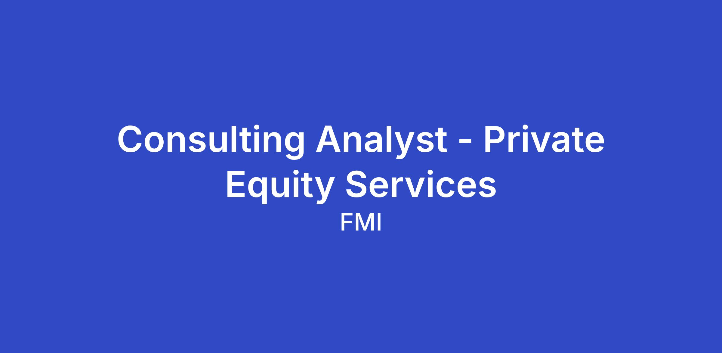 We are looking for talented individuals to join FMI’s rapidly growing Private Equity Services Practice in 2026. As an Analyst, you’ll join a team that partners with leading financial sponsors to deliver transaction-related consulting services (i.e., commercial due diligence, operational due diligence, and sell-side market studies). Our clients range from $100+ billion AUM firms to independent sponsors and family offices.
