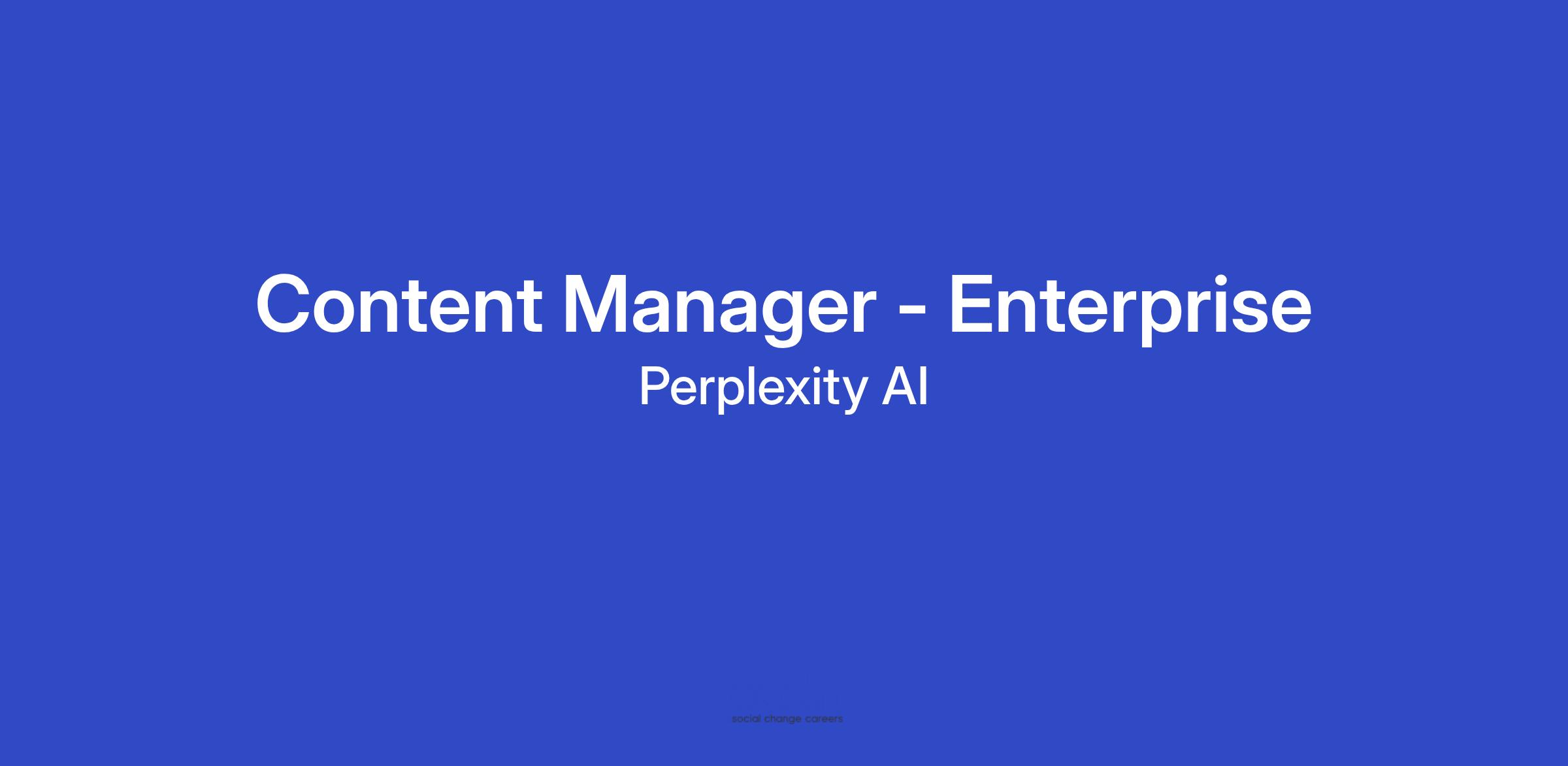 Perplexity is revolutionizing how companies get work done. We are seeking a Senior Content Manager to join our team and work closely with the Enterprise team. You will build out content strategy, development, and copywriting.