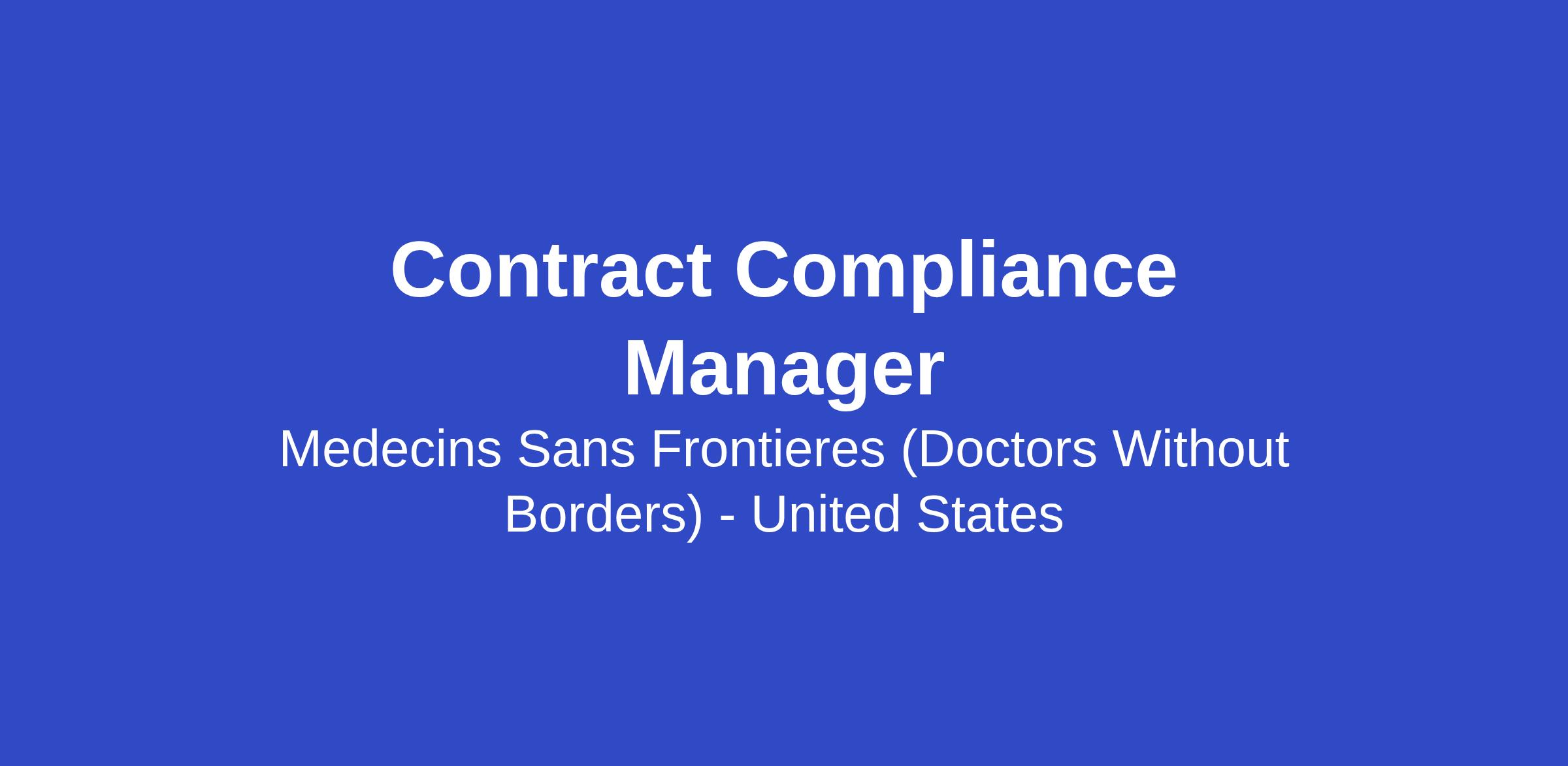 The Contract Compliance Manager is responsible for vendor management, vendor performance monitoring, contract management, legal compliance, operational efficiency, and strategic alignment. This role plays a critical function in MSF-USA by directing and overseeing the full lifecycle of contracts—ensuring risks are minimized, services operate smoothly, and systems function efficiently.