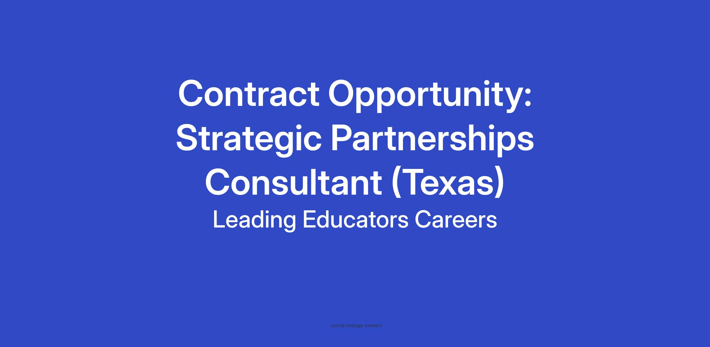 Leading Educators is seeking a Texas-based contractor to serve as a Strategic Partnerships Consultant (Texas) supporting Phase 1: Recruitment Readiness + District Engagement and Phase 2: LIFT Implementation Support.