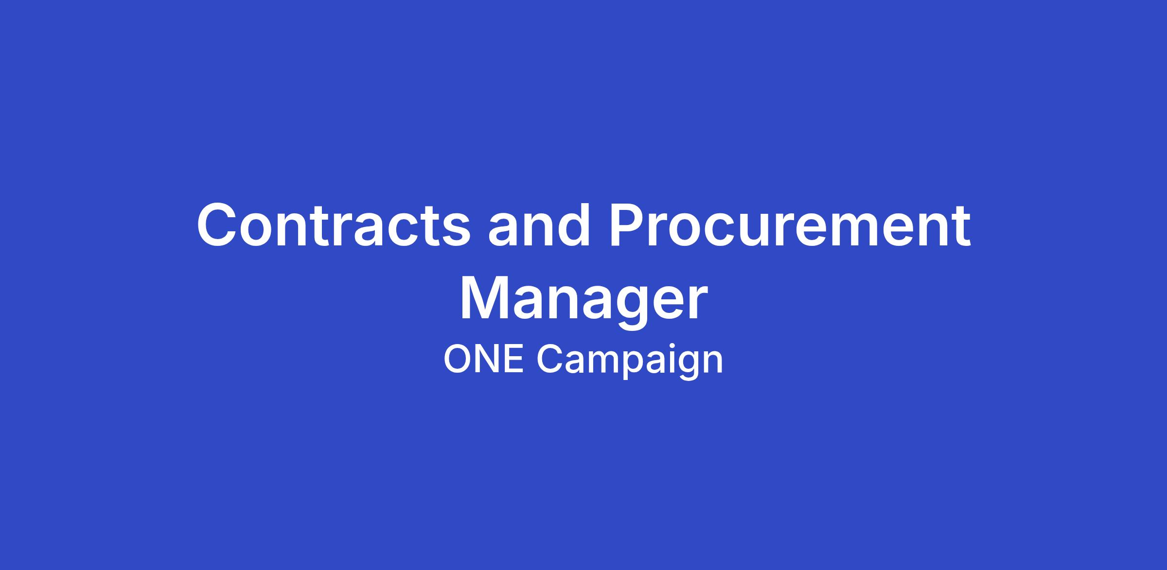 The Contracts and Procurement Manager will strengthen how ONE purchases goods and services across our global offices by building fit-for-purpose procurement systems, processes and controls that enable speed and sound risk management. This role focuses primarily on procurement of services, partnering closely with Legal, Finance and program teams to ensure purchases are commercially sound, properly scoped, compliant, well-documented, cost-effective, and aligned to budgets, grants, and donor requirements.