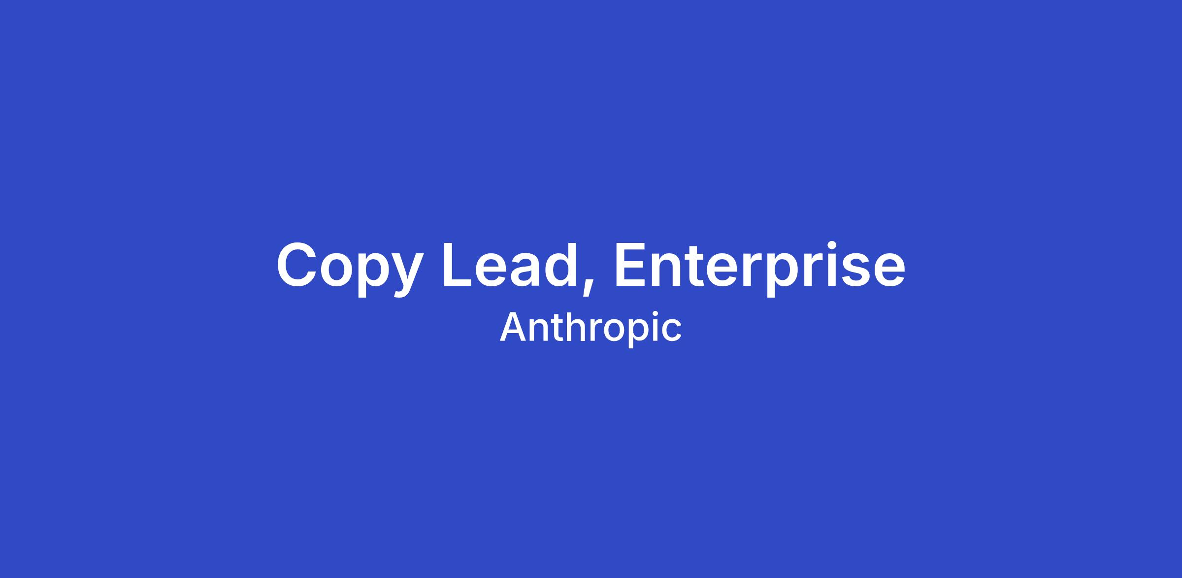 We’re looking for a Copywriter to help define how Anthropic speaks to enterprise audiences. You’ll partner closely with the Art Director, Enterprise and the broader enterprise creative team, concepting and writing across campaigns, solutions pages, events, content, and performance marketing. The work spans many surfaces and channels, and each one requires nuance — a campaign headline isn’t a whitepaper intro isn’t a paid social line. You should know how to flex for each without losing the thread that makes it all sound like us.