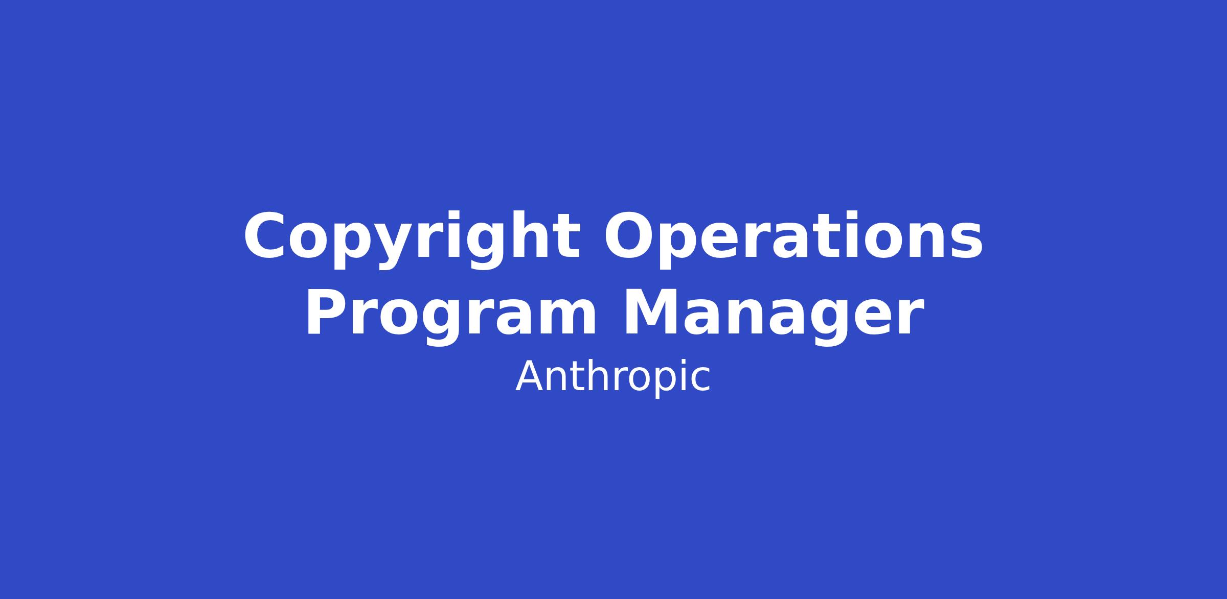 We are seeking a Copyright Operations Program Manager to help build and run Anthropic's dedicated Copyright Operations program. This role is critical to standing up the infrastructure, workflows, and processes needed to handle copyright compliance at scale. You'll be responsible for processing DMCA and other copyright takedown notices, managing URL opt-out requests, supporting regulatory compliance workflows, and helping consolidate intake channels into a unified, trackable system. This is a ground-floor opportunity: you'll be building the program and running it simultaneously, shaping how Anthropic handles copyright operations as our product capabilities and international obligations grow.
