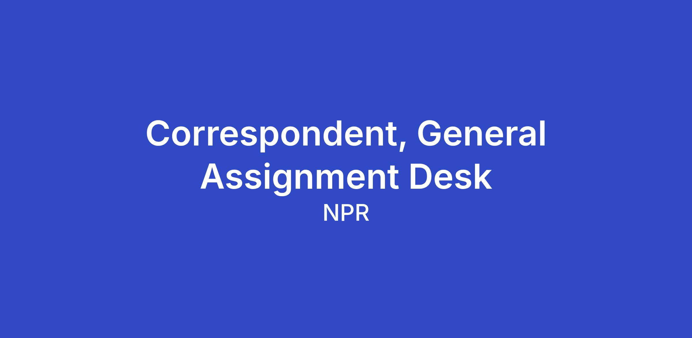 NPR's General Assignment Desk is seeking an experienced Correspondent to join the team.