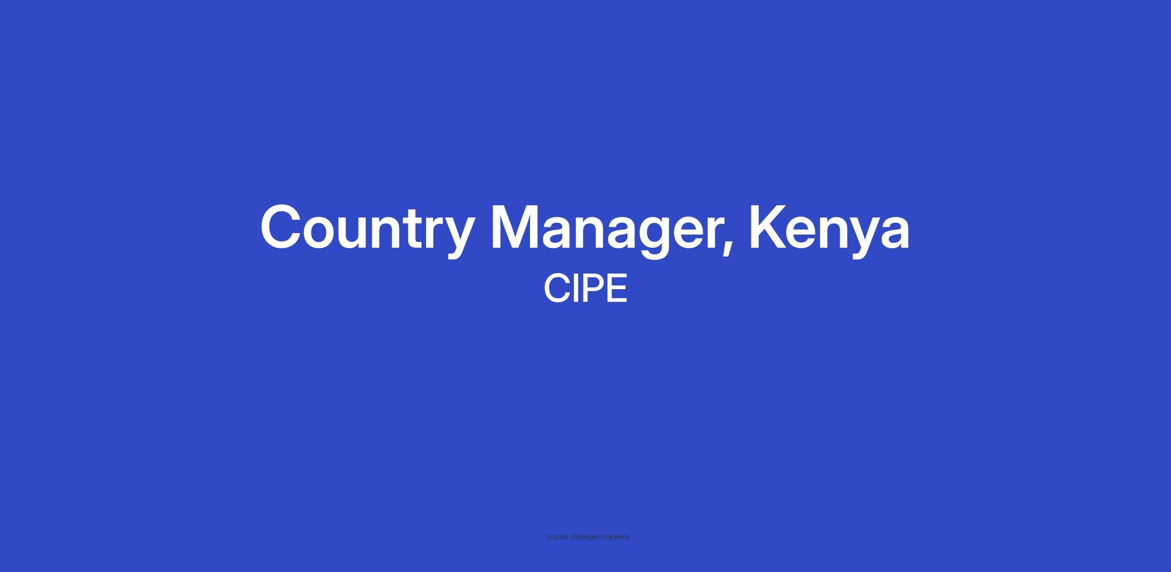 Location: Nairobi, KenyaScope: The Country Manager is the resident representative of CIPE in Kenya responsible for overseeing and ensuring the quality of all CIPE’s program management, implementation, and operations in the country. With the supervision and close coordination of the CIPE Africa Regional Hub based in Lagos, Nigeria, the Country Manager supervises all in-country program personnel, liaises with CIPE’s donors, partners, and stakeholders. As CIPE’s representative, the Country Manager will contribute to CIPE’s program strategy, design, delivery, and quality of all CIPE projects ensuring strict compliance with CIPE policies and donor requirements.