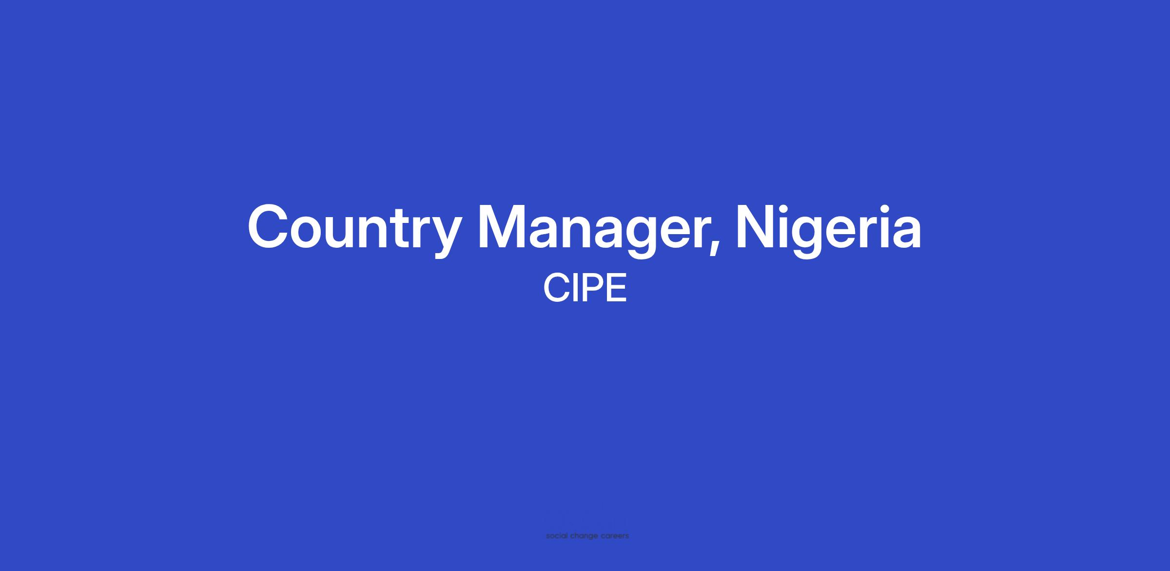 Location: Lagos, NigeriaScope: The Country Manager is the resident representative of CIPE in Nigeria responsible for overseeing and ensuring the quality of all CIPE’s program management, implementation, and operations in the country. With the supervision and close coordination of the CIPE Africa Regional Hub based in Lagos, Nigeria, the Country Manager supervises all in-country program personnel, liaises with CIPE’s donors, partners, and stakeholders. As CIPE’s representative, the Country Manager will contribute to CIPE’s program strategy, design, delivery, and quality of all CIPE projects ensuring strict compliance with CIPE policies and donor requirements.