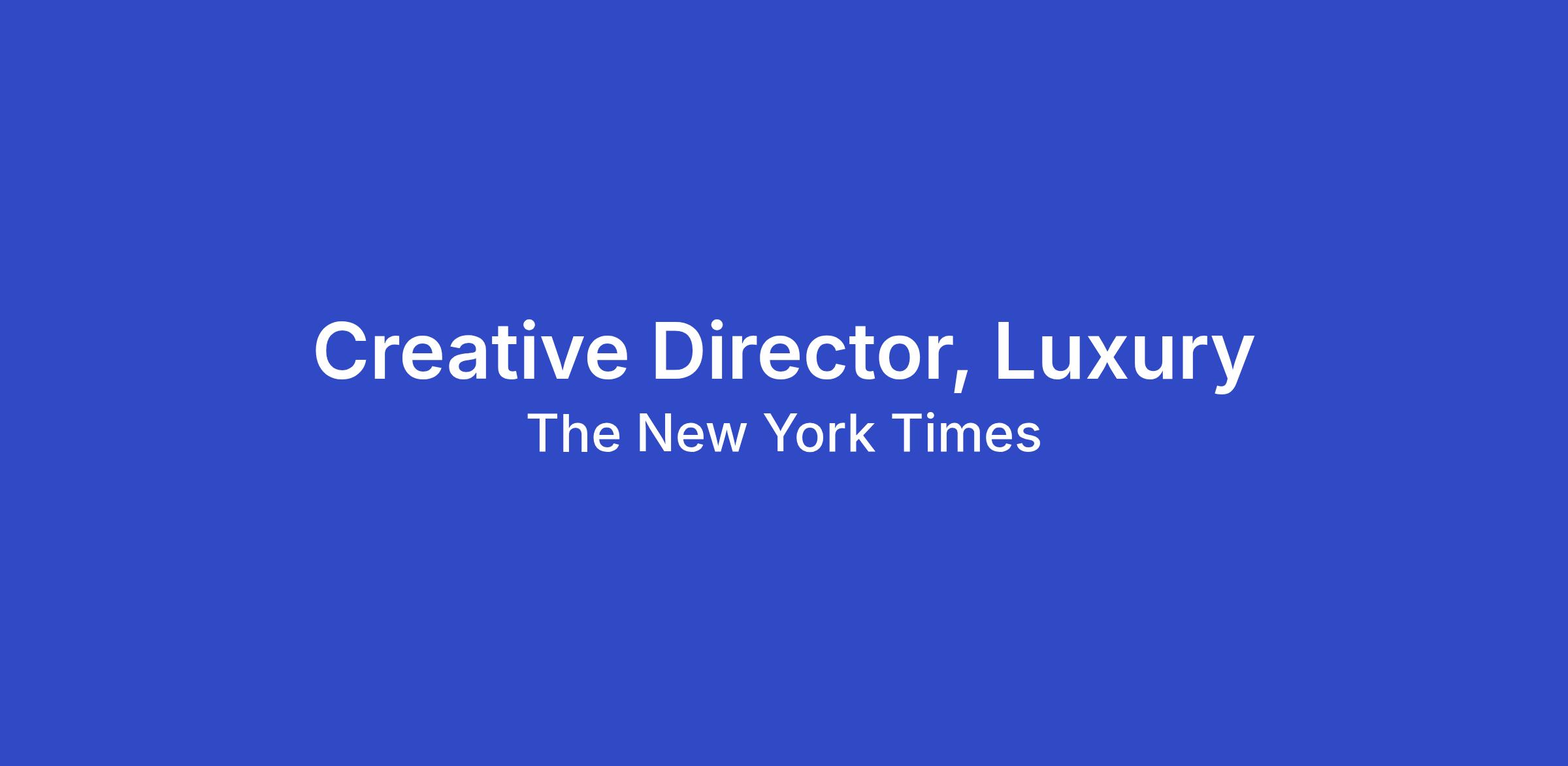 The New York Times's T Brand Studio is looking for a Creative Director, with expertise in branded content for luxury advertisers. You are an experienced CD who is inspired by culture and the world around them. We need creative visionaries who make work that people want to find, become a part of and ultimately, share. You will become the voice of the ideas you create, lead and present work, both internally and externally.