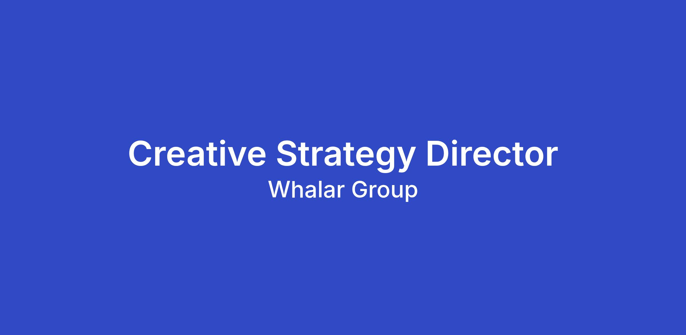 As Director, Creative Strategy at Whalar you are the connective tissue between brand ambition and creator culture. You know that the best ideas in the creator economy aren’t briefed into existence but built in collaboration with creators who have agency and authority with their communities.