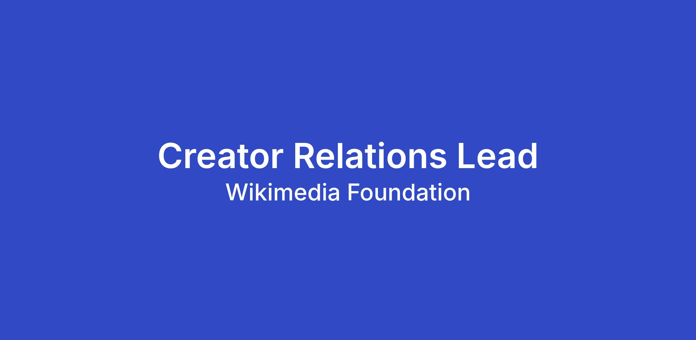 The Wikimedia Foundation seeks a Creator Relations Lead to build and manage a world-class creator relations approach that extends Wikipedia’s reach to new and younger audiences on social media. Our work on social media aims to build an engaged online community of young people that love, learn from, engage with, trust and share Wikipedia content on these platforms. You can read more about it here.