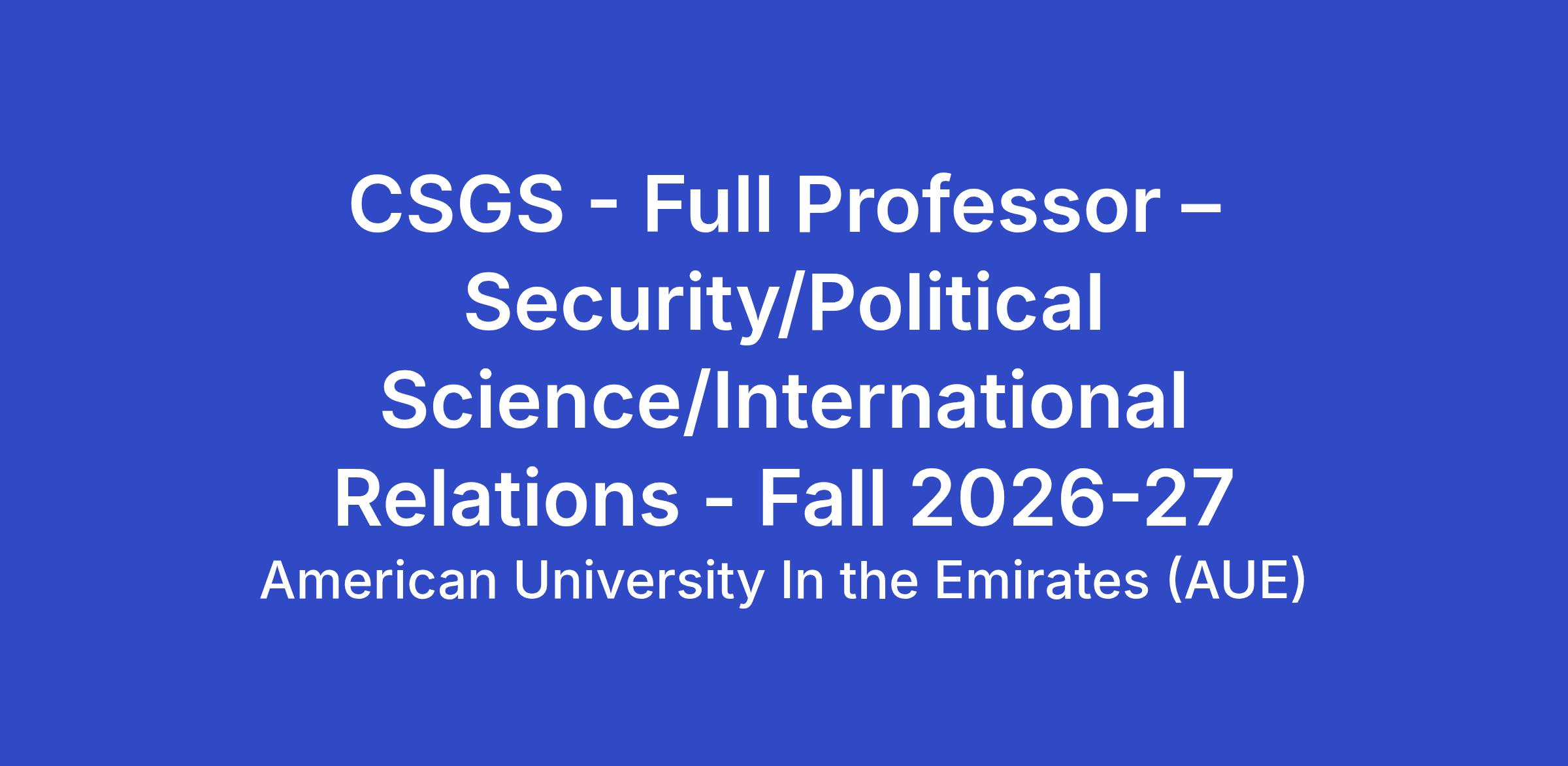 The American University in the Emirates (AUE) invites qualified applicants to apply for a full-time faculty position at the rank of Full Professor in the field of Security and Studies.