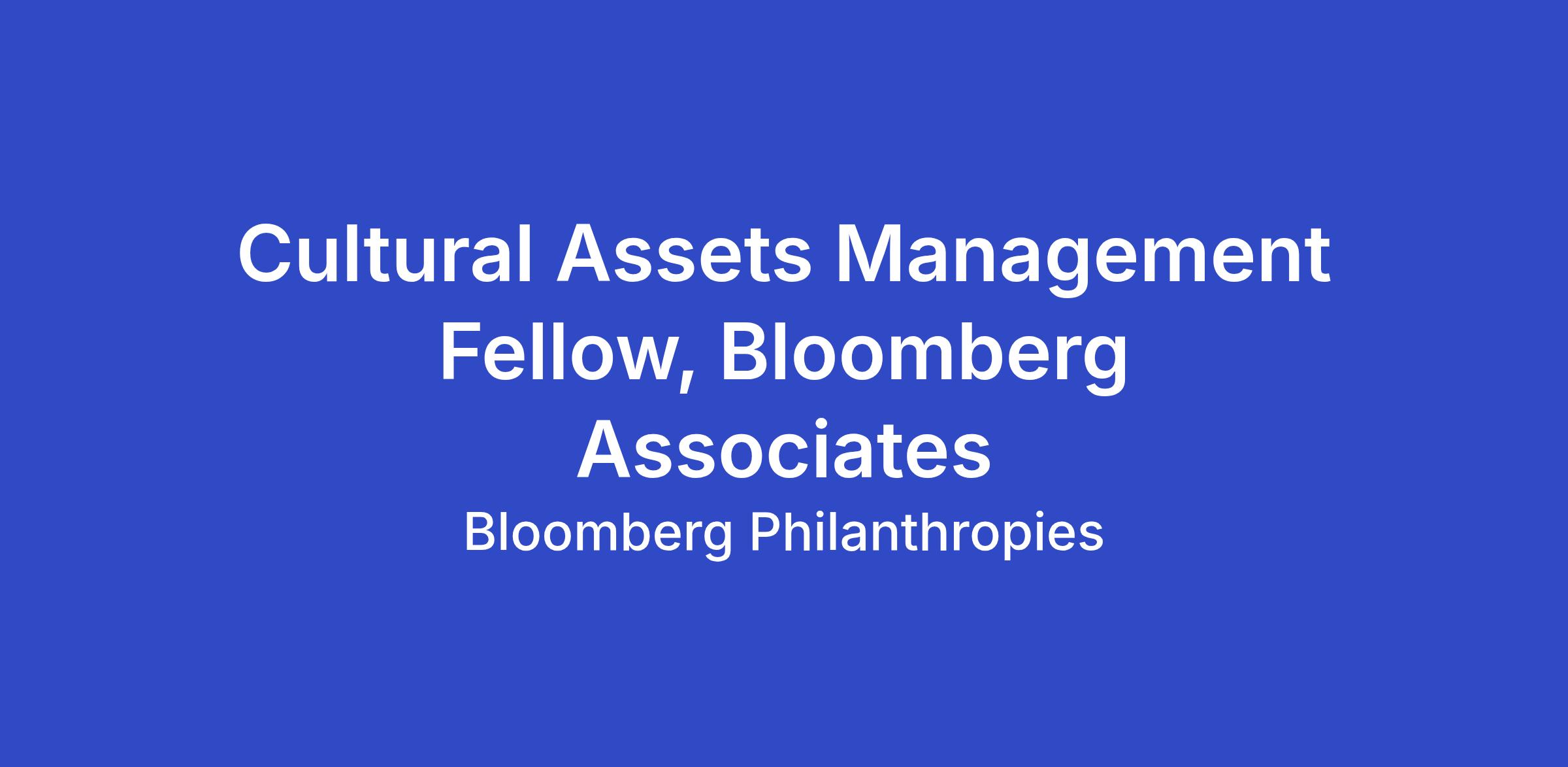 Support the Bloomberg Associates (BA) Cultural Assets Management team with: