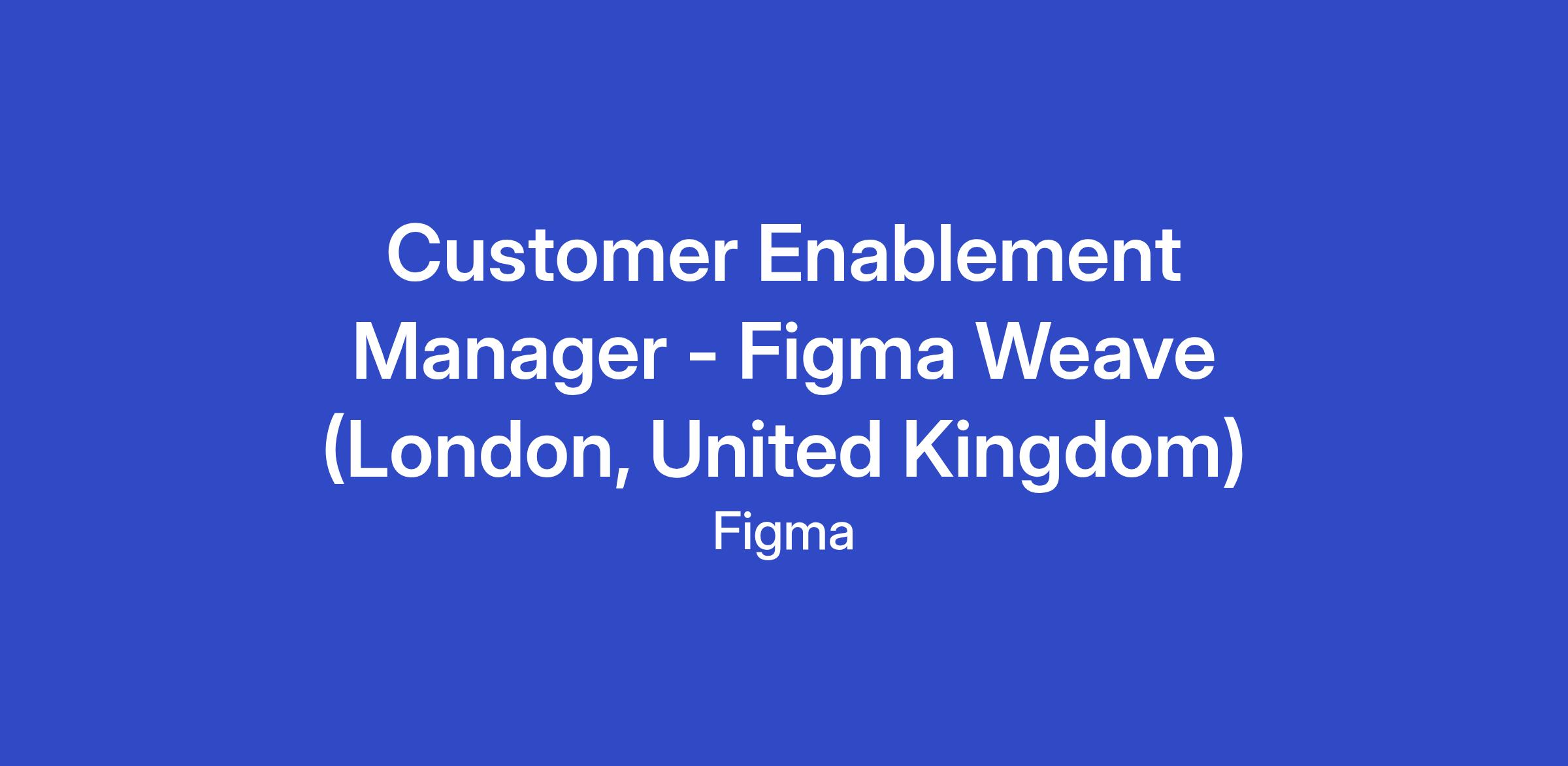 As a Customer Enablement Manager, you’ll work directly with our larger customers to help them get the most value from the Figma Weave platform. You'll design and deliver tailored enablement strategies that drive product adoption, help uncover new use cases, and support long-term success.