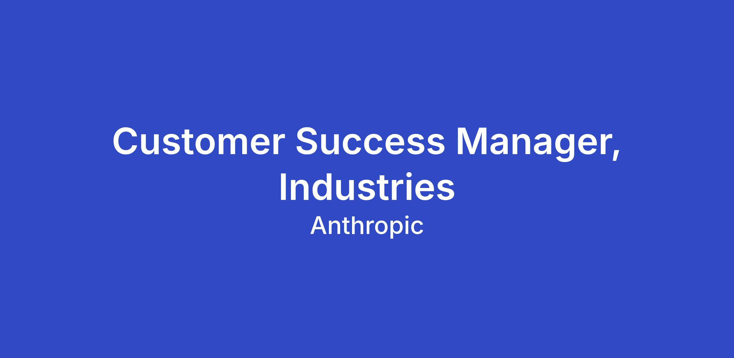 Join Anthropic's Customer Success team in a high-impact role driving AI adoption across our Industry segment. As an Enterprise Customer Success Manager for Industries, you'll be the strategic partner and a trusted advisor to our most complex customers with a portfolio spanning Financial Services, Systems Integrators, Semiconductor, Manufacturing and Retail organizations—helping them harness the full potential of all our Claude capabilities - API, Claude for Enterprise, and Claude Code.