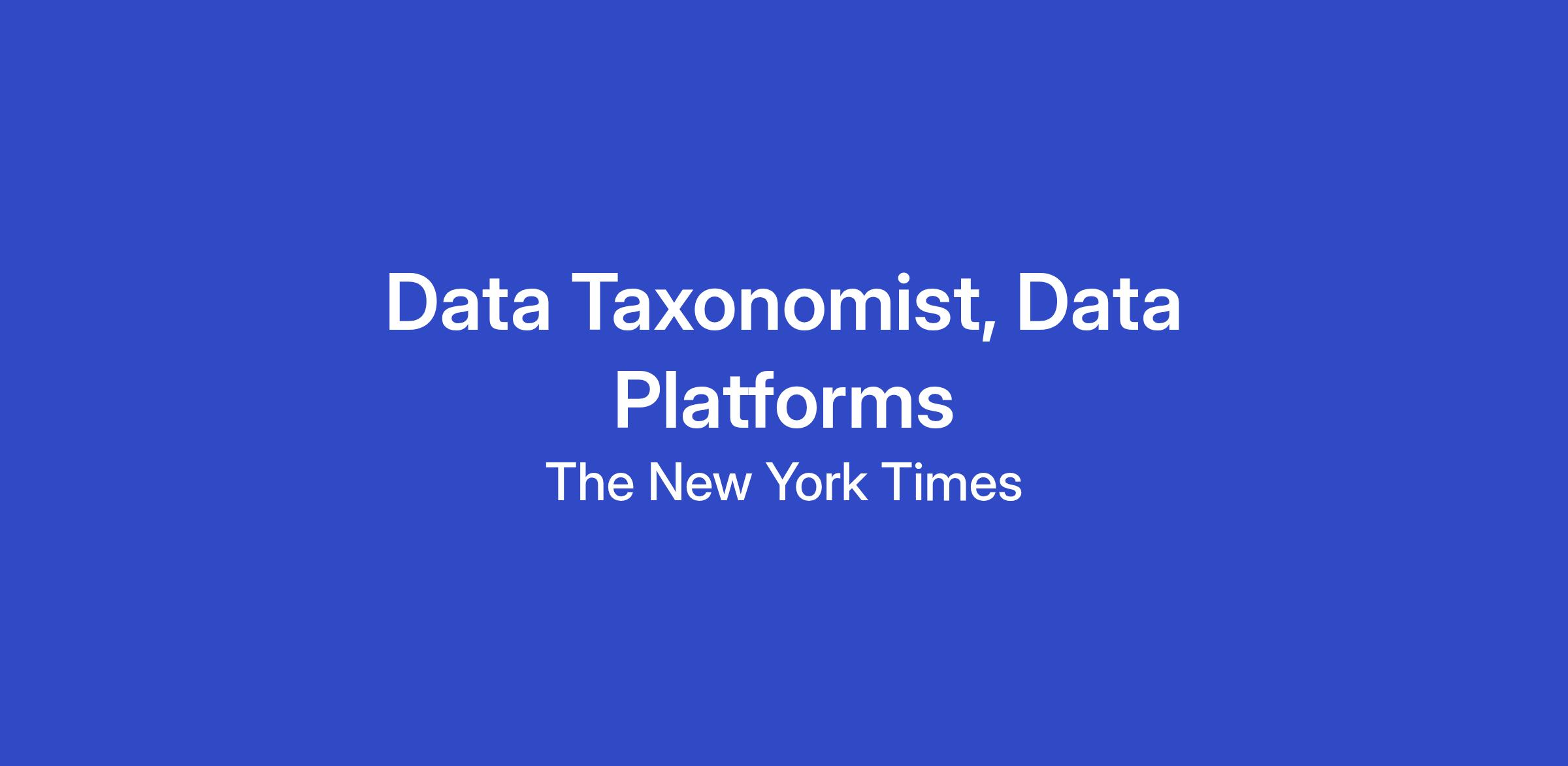 The Data Platform Mission aims to empower the organization to access and use data to answer important questions, power user experiences, and to make strategic decisions that create value across the organization. We are looking for a Data Taxonomist that can help develop a new function within Data Platform that focuses on supporting our most critical data assets across The New York Times data domains. You will partner with many different teams and roles to develop data products, event tracking, data models, and data taxonomies. This role is based in our New York City office in Times Square.