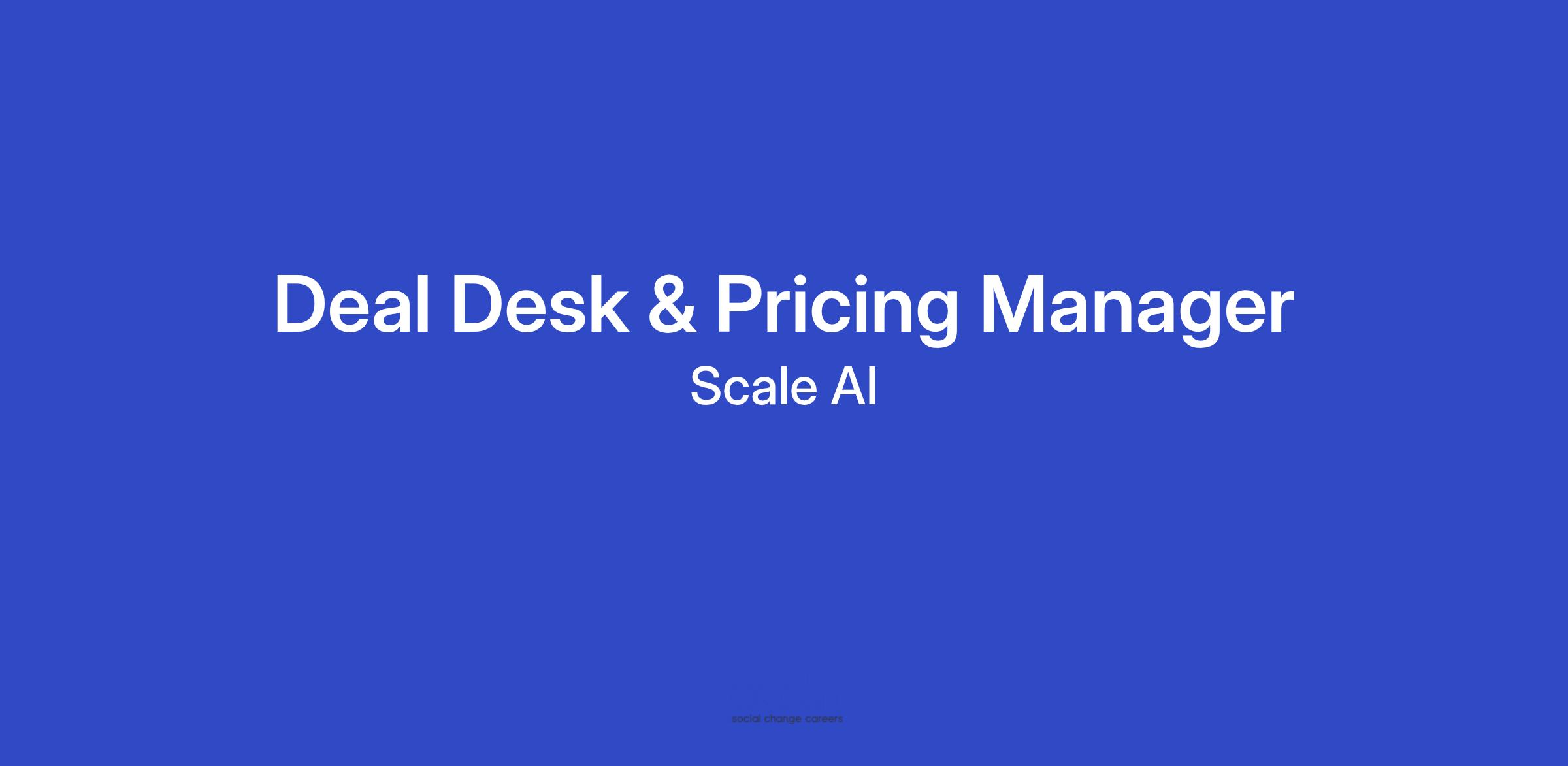 As a Deal Desk & Pricing Manager, you will be joining the Sales Operations & Strategy team and will have the opportunity to directly shape our rapidly growing sales organization. You will work closely with Sales and Finance leadership, including our SVP of Sales & Chief Financial Officer, and will play a key role in aligning the go-to-market team to ensure success in our goals and mission. We are looking for highly motivated generalists who combine an empathetic interpersonal style and analytical rigor to drive clear outcomes. If you enjoy building strong relationships and solving complex problems in an energetic and fast-paced environment, we would love to hear from you! Each day in the life at Scale is different and we promise you will never be bored.