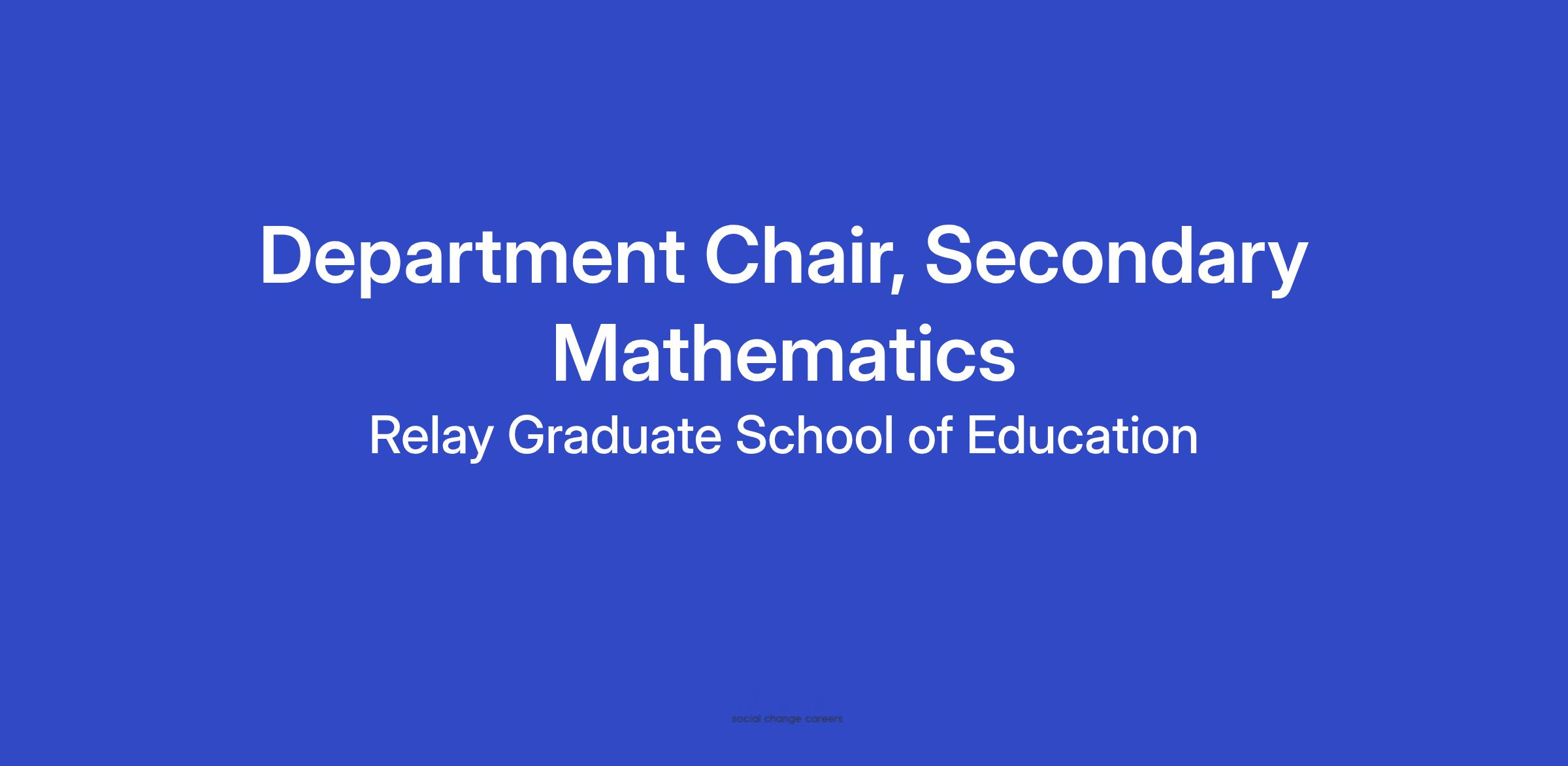 Job Title: Department Chair, Secondary Mathematics