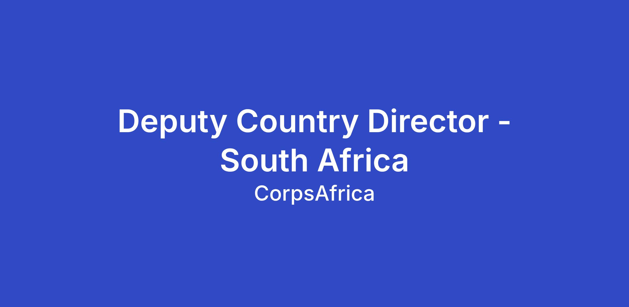 The Deputy Director is a full-time staff position reporting directly to the Country Director of CorpsAfrica/South Africa. He/She will have a significant opportunity to build the organization and must be effective working independently as well as part of a team. He/She will also possess a demonstrated passion and commitment to youth leadership, participatory community development, impact evaluation, transparency, and accountability.