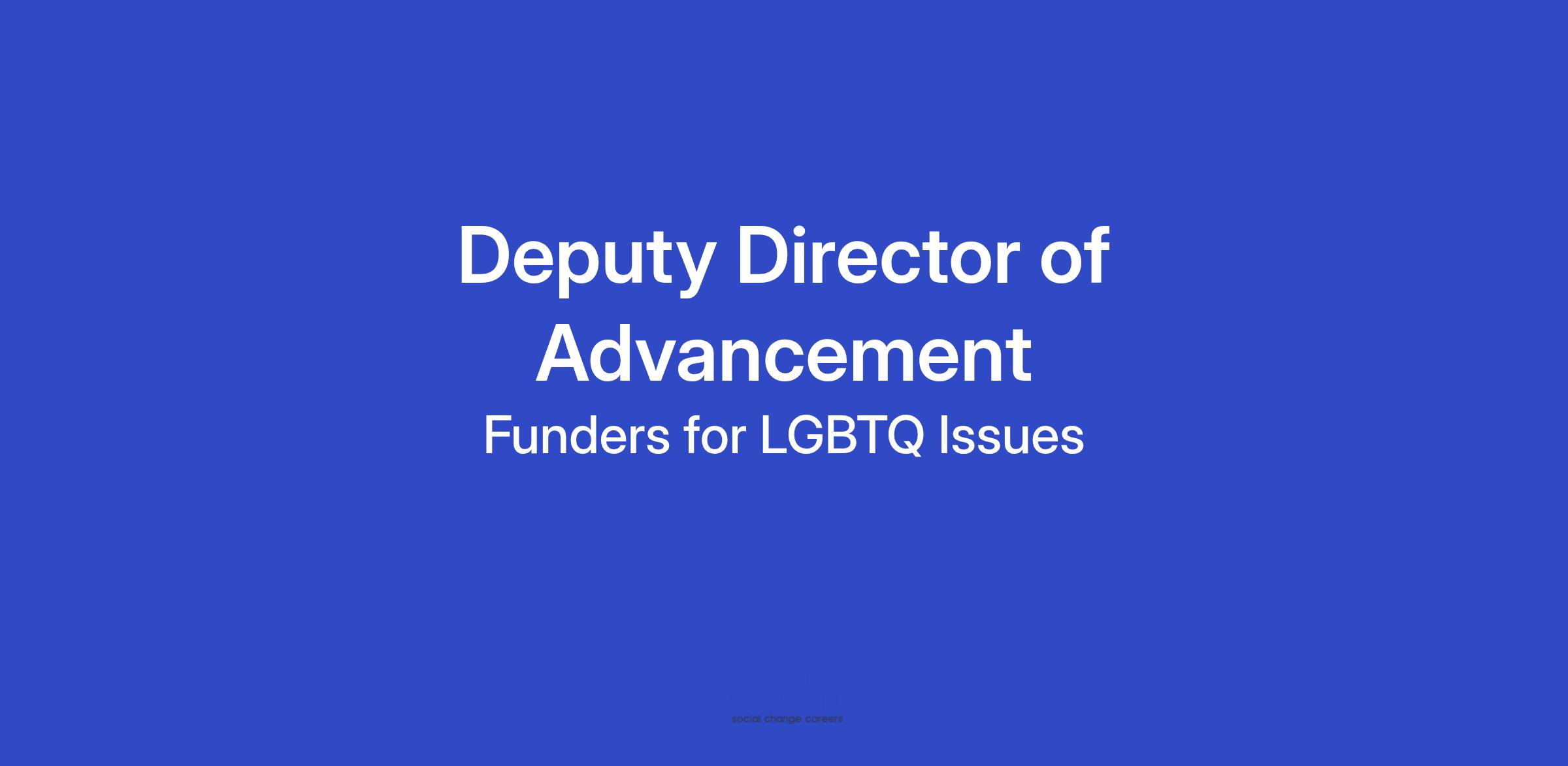 The Deputy Director of Advancement is a new role at Funders for LGBTQ Issues and will serve a crucial role in setting and implementing the organization’s internal and external fundraising strategy by engaging long-time funders of LGBTQ issues, and building new programs to engage high-net-worth donors and donor advisors. The Deputy Director of Advancement is responsible for overseeing organizational development across the goals outlined in our 2024 - 2027 Strategic Plan.