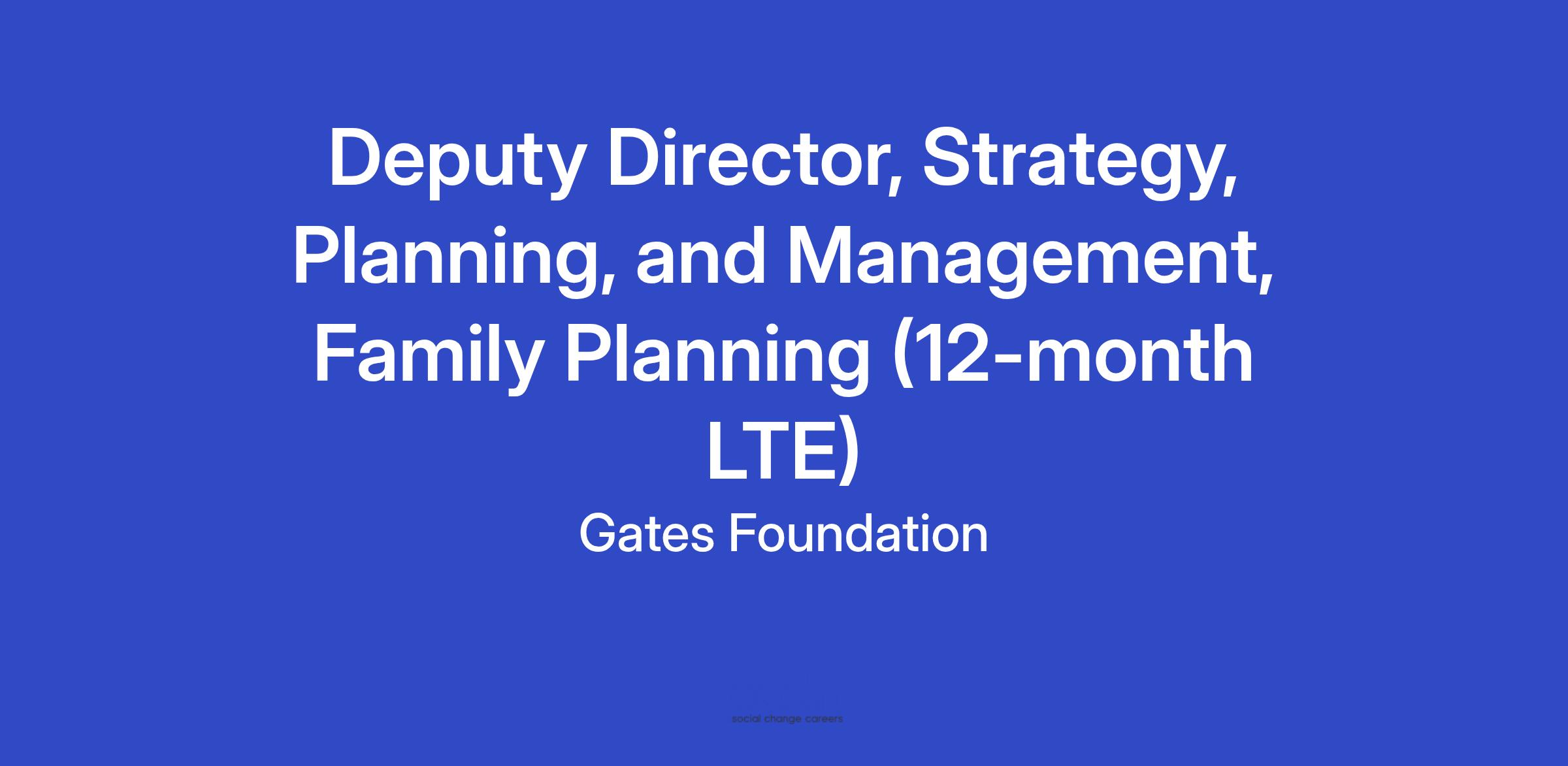 As Deputy Director, Strategy, Planning and Management (DDSPM) on the Family Planning (FP) team, you are responsible for supporting strategic and operational aspects for the FP portfolio, including oversight of 2026 Strategy Review and Annual Planning deliverables, ongoing pipeline and portfolio management, progress tracking via FP Dashboard, an investment portfolio on building the landscape on cost-efficiency of FP delivery, and ad hoc cross-cutting strategy/strategy implementation projects. You are responsible for developing a 10+ year vision and strategy for the Family Planning team and aligning it with foundation leadership and the FP team. You are the leader of the Business Team and manage the Strategy Team within it. You play a critical Chief of Staff / strategic advisor role to the Director of the team.
