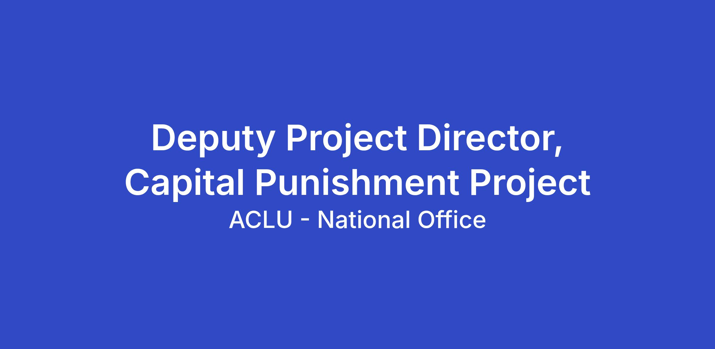 The ACLU seeks applicants for the full-time position of Deputy Project Director in the Capital Punishment Project of the ACLU’s National office in Washington, DC; San Francisco, CA; Durham, NC or New York, NY. This is a hybrid role that has in-office requirements of two (2) days per week or eight (8) days per month.