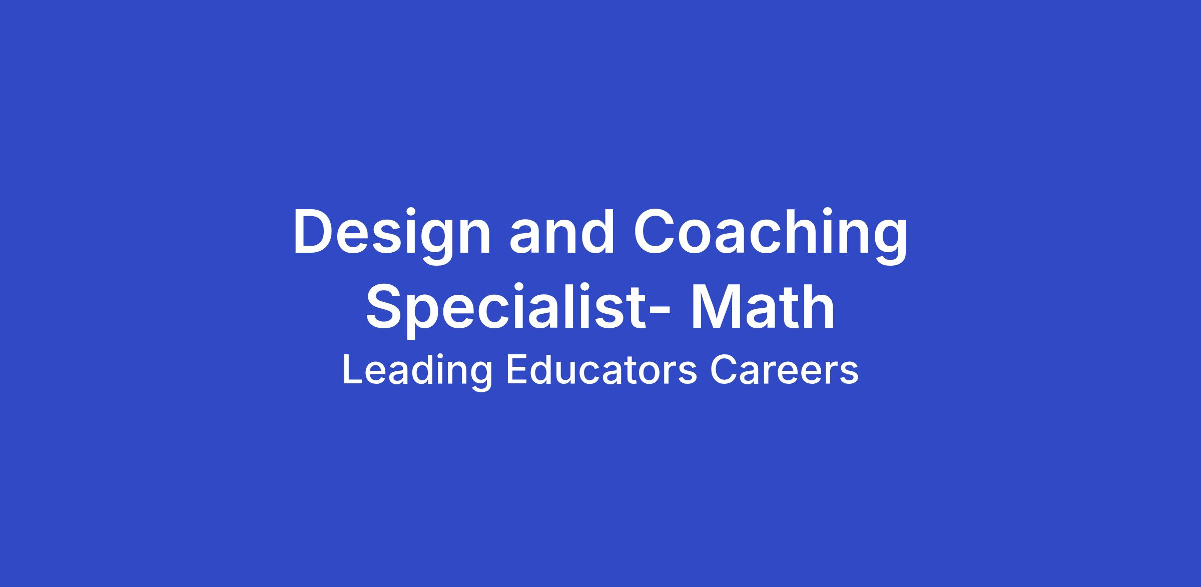 Leading Educators is seeking a Design and Coaching Specialist to drive measurable improvements in high school math instruction across New York City schools. In this dual-focused role, you'll combine school-based coaching with instructional design to ensure our programming translates directly into stronger teacher practice and student outcomes.