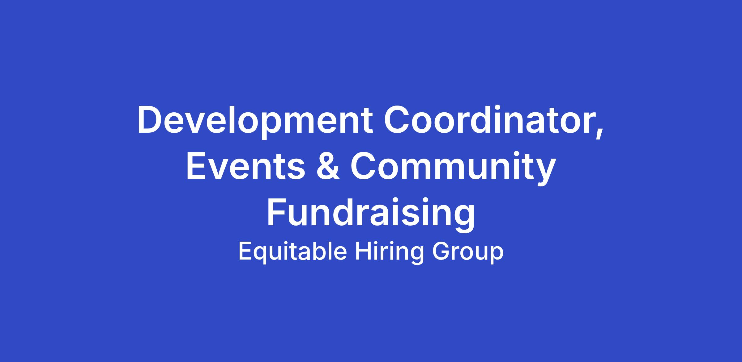 About the role - Development Coordinator, Events & Community FundraisingThe majority of TCR’s revenue comes from individual giving, events, and community-based fundraising. Signature events like our Annual Breakfast and Fall 5K/walk/community event raise critical funds while deepening donor and partner connections to our mission. The Development Coordinator, Events & Community Fundraising, is essential to growing this support. By managing mission-centered events, peer-to-peer campaigns, and corporate sponsorships, this role ensures TCR’s sustained impact. The Development Coordinator reports to the Development Director.