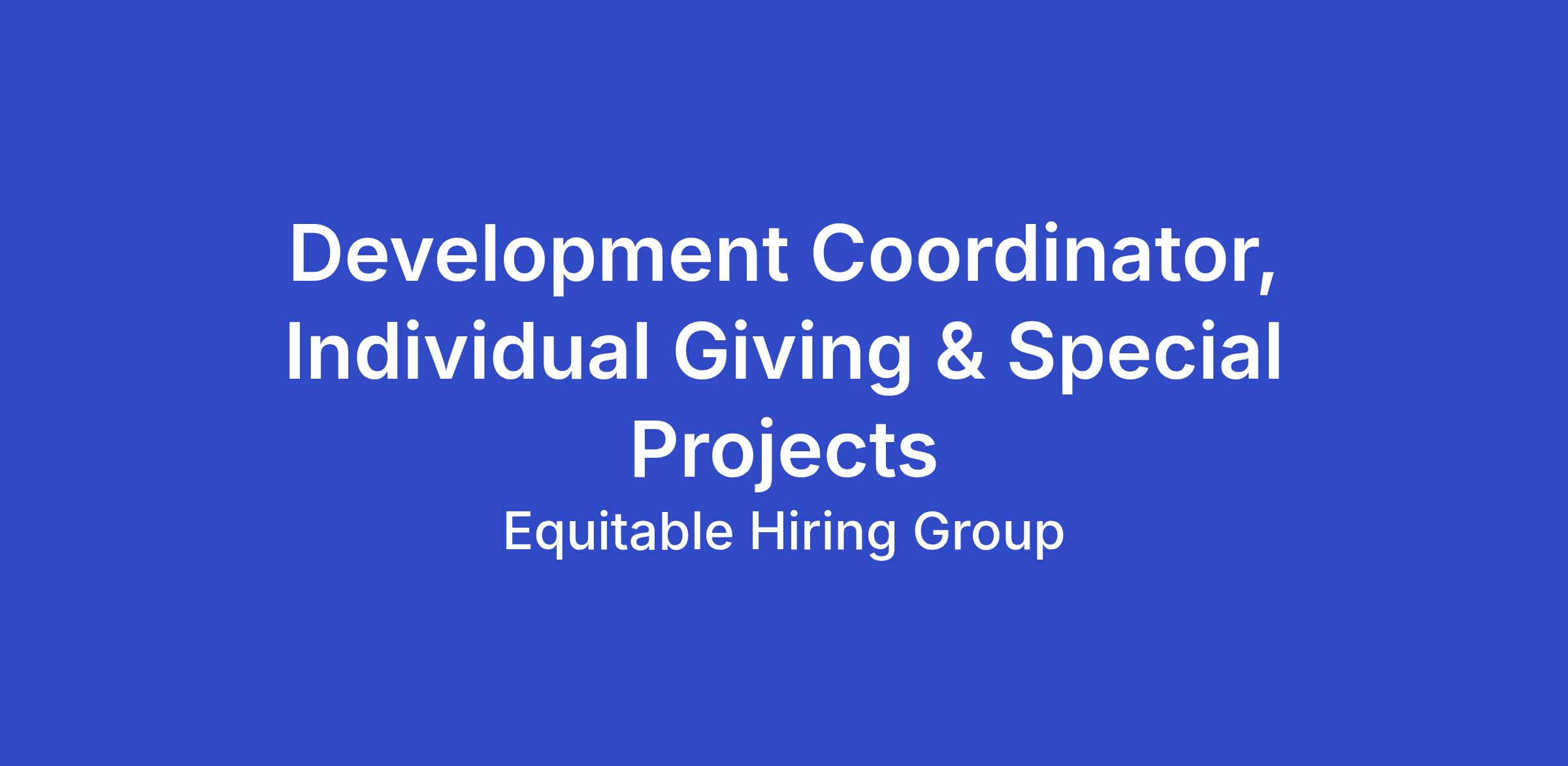 About the role - Development Coordinator, Individual Giving & Special ProjectsThe Development Coordinator, Individual Giving & Special Projects, is an essential member of the team focused on building lasting relationships with TCR’s individual supporters. Grounded in a relationship-centered fundraising model, this role is primarily responsible for stewarding and retaining donors who give between $250 and $2,500 annually.