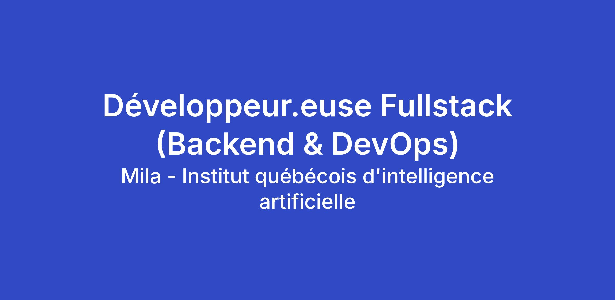 Poste temporaire de 6 mois au sein de Mila, suivi d’une transition vers un poste permanent en laboratoire