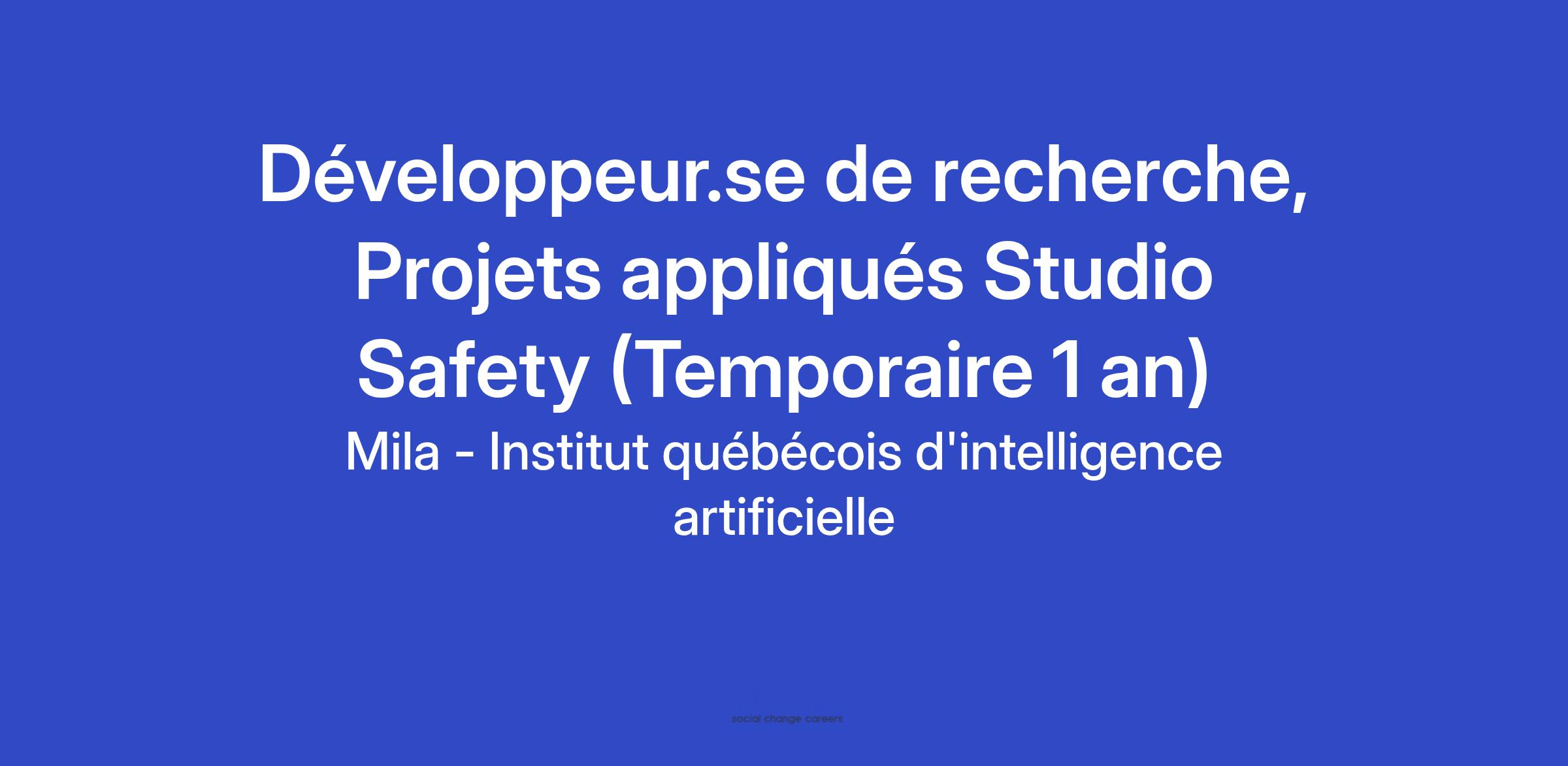 Nous recherchons un·e développeur·se motivé à travailler sur des projets appliqués de pointe au sein du Studio Safety de Mila. Il s'agit d'une opportunité passionnante pour explorer les dernières avancées en intelligence artificielle (IA). Vous collaborerez avec notre équipe en apprentissage automatique et celle des projets appliqués. Vous participerez à la conception de prototypes répondant à des besoins concrets pour le Studio Safety. De plus, vous aiderez les chercheur.e.s à améliorer le processus de recherche en optimisant le code et en déployant les outils les plus performants.