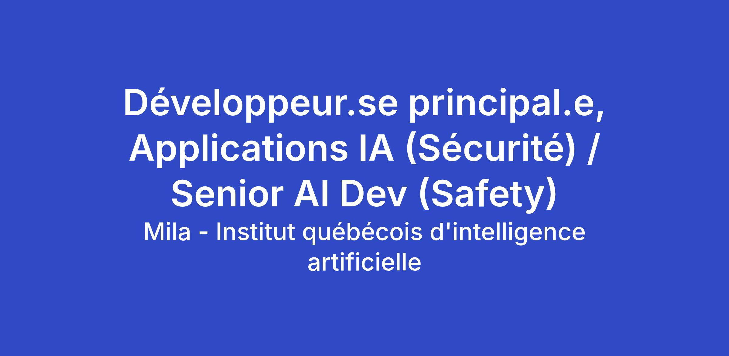 Développeur.se principal.e, Applications IA (Sécurité) / Senior AI Dev (Safety)