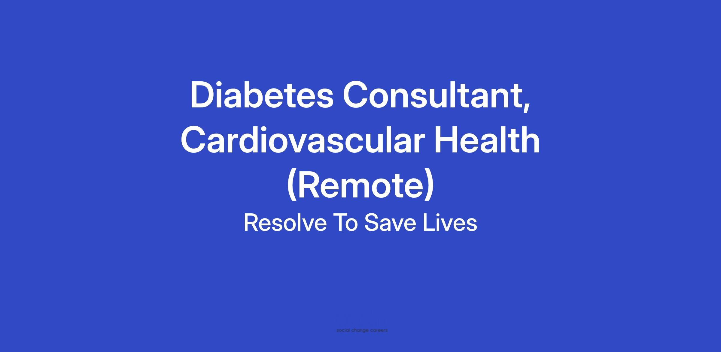 Resolve to Save Lives is seeking a Diabetes Consultant, Cardiovascular Health, to support our global efforts to integrate diabetes and hypertension management at the primary health care level.