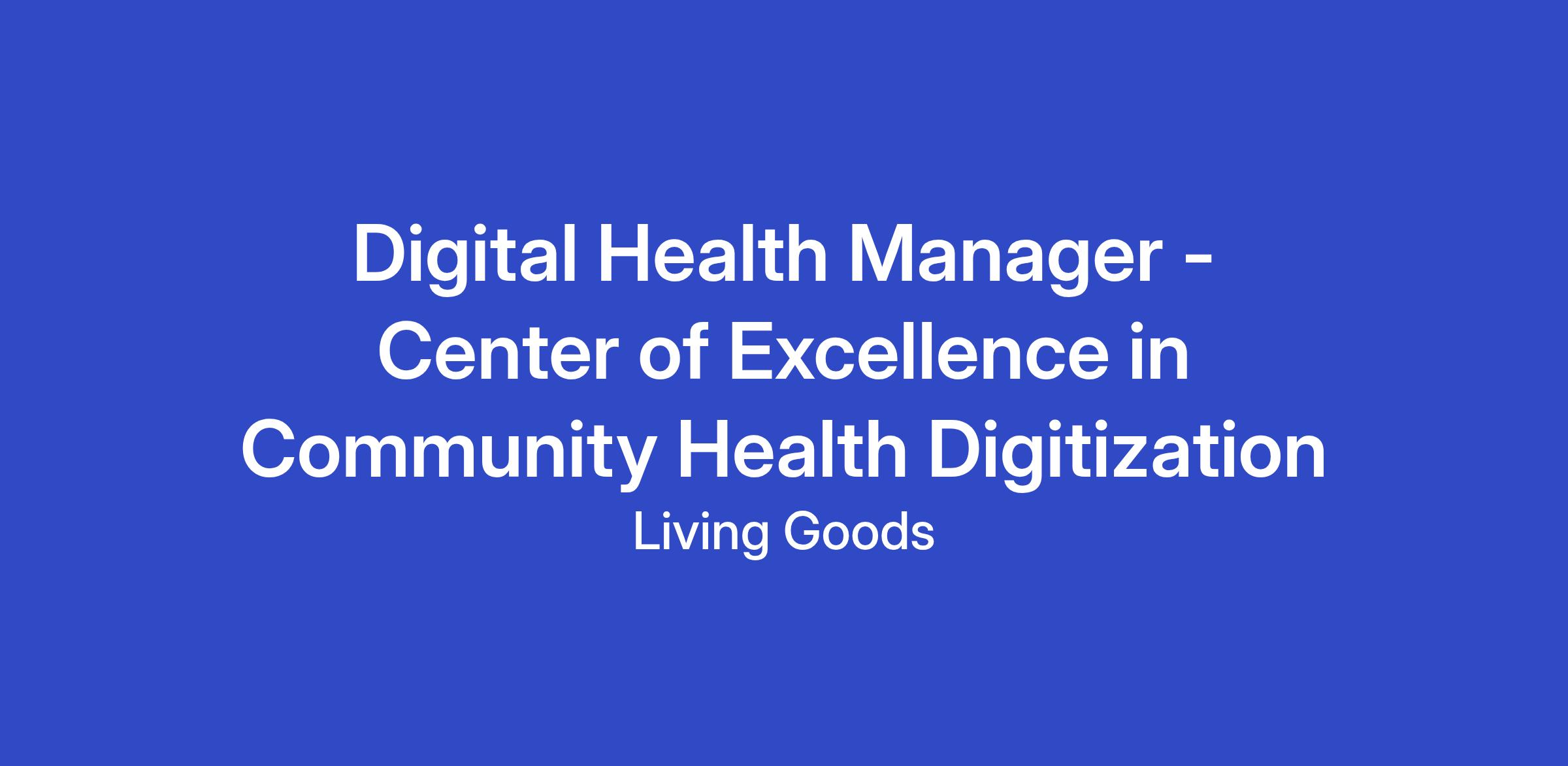 Digital Health Manager - Center of Excellence in Community Health Digitization