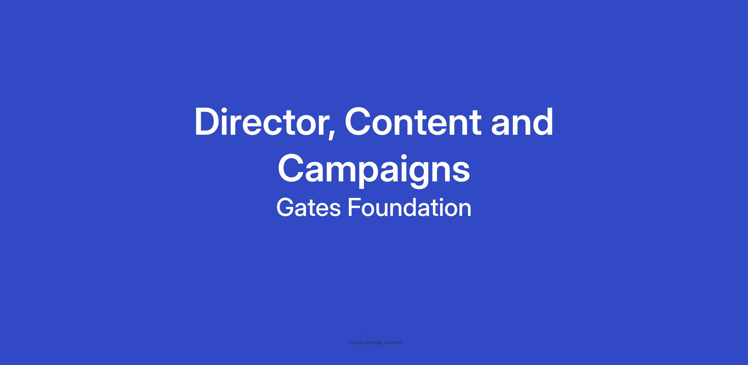 We are building a leadership team to accelerate the next phase of our strategy. As a senior communications leader, the Director, Content and Campaigns, will define and direct the Gates Foundation’s global brand and public engagement strategy, inspiring audiences around our mission to create a world where every person has the opportunity to live a healthy, productive life. You will oversee the foundation’s global campaigns, digital ecosystem, and brand management, ensuring cohesive storytelling, consistent brand identity, and measurable impact across all channels and regions. Drawing on your expertise in strategic marketing, digital innovation, campaign development, and global communications, you will guide how the foundation reaches, inspires, and engages key audiences across North America, Europe, the Middle East, Africa, and Asia.