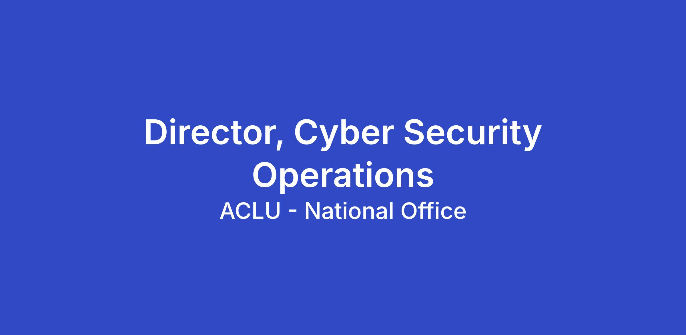 The ACLU seeks applicants for the full-time position of Director, Cyber Security Operations in the Administration & Finance Department of the ACLU’s National office in New York, NY, or Washington, DC. This is a hybrid role that has in-office requirements of two (2) days per week or eight (8) days per month.