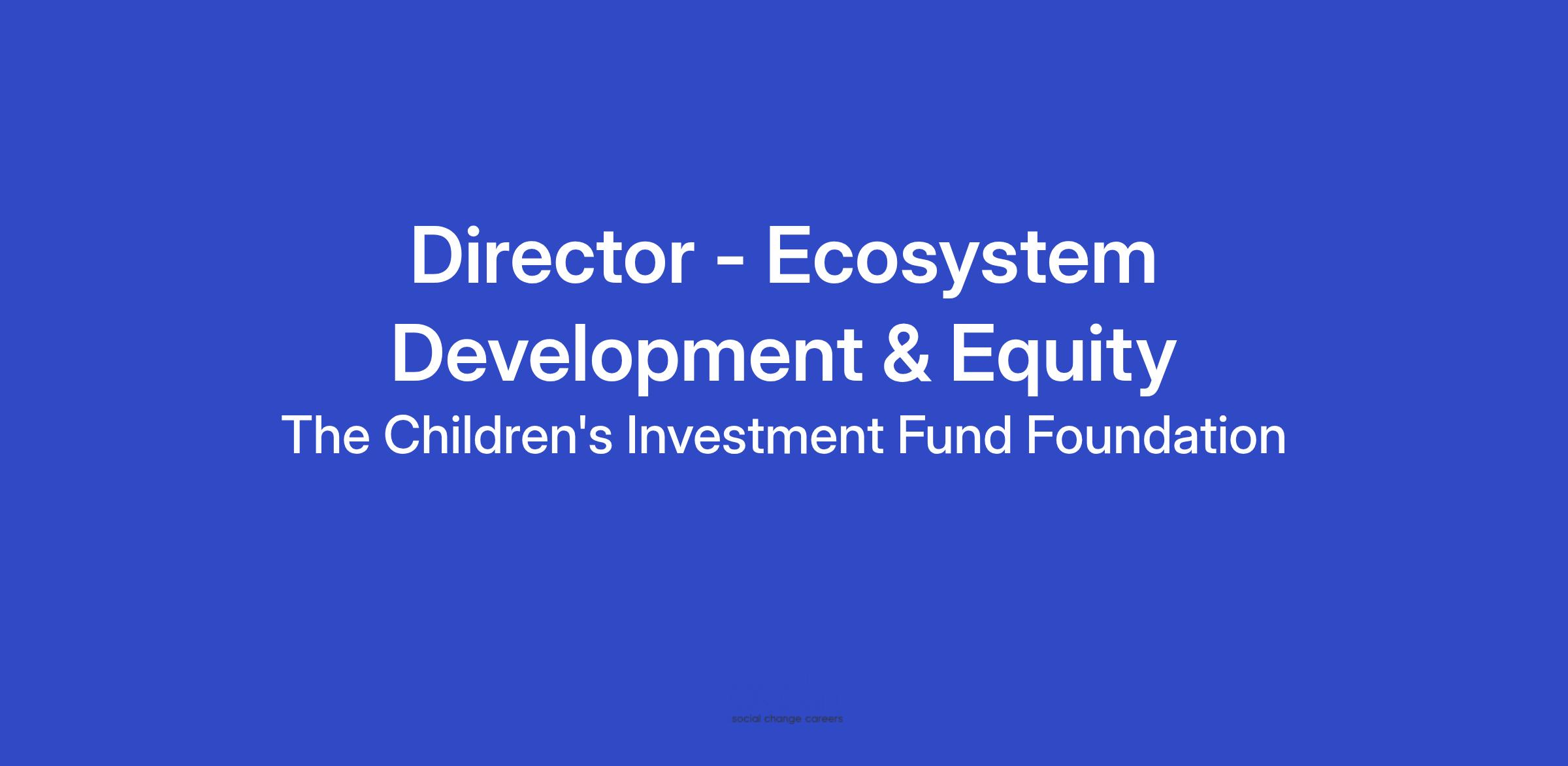 We are looking for a strategic leader who can help shape resilient and inclusive ecosystems that drive positive and sustainable change across CIFF's priority areas (incl. Climate, Child Health & Nutrition, SRHR, Girls' Education & Economic Empowerment and Ending Violence Against Children). As Director of Ecosystem Development & Equity, you’ll co-lead CIFF's ecosystem foresight, thought partnership and influencing strategy, focusing on connecting ideas, people, organisations and platforms to build strong networks and systems that support our charitable mission and commitment to equity and inclusion.