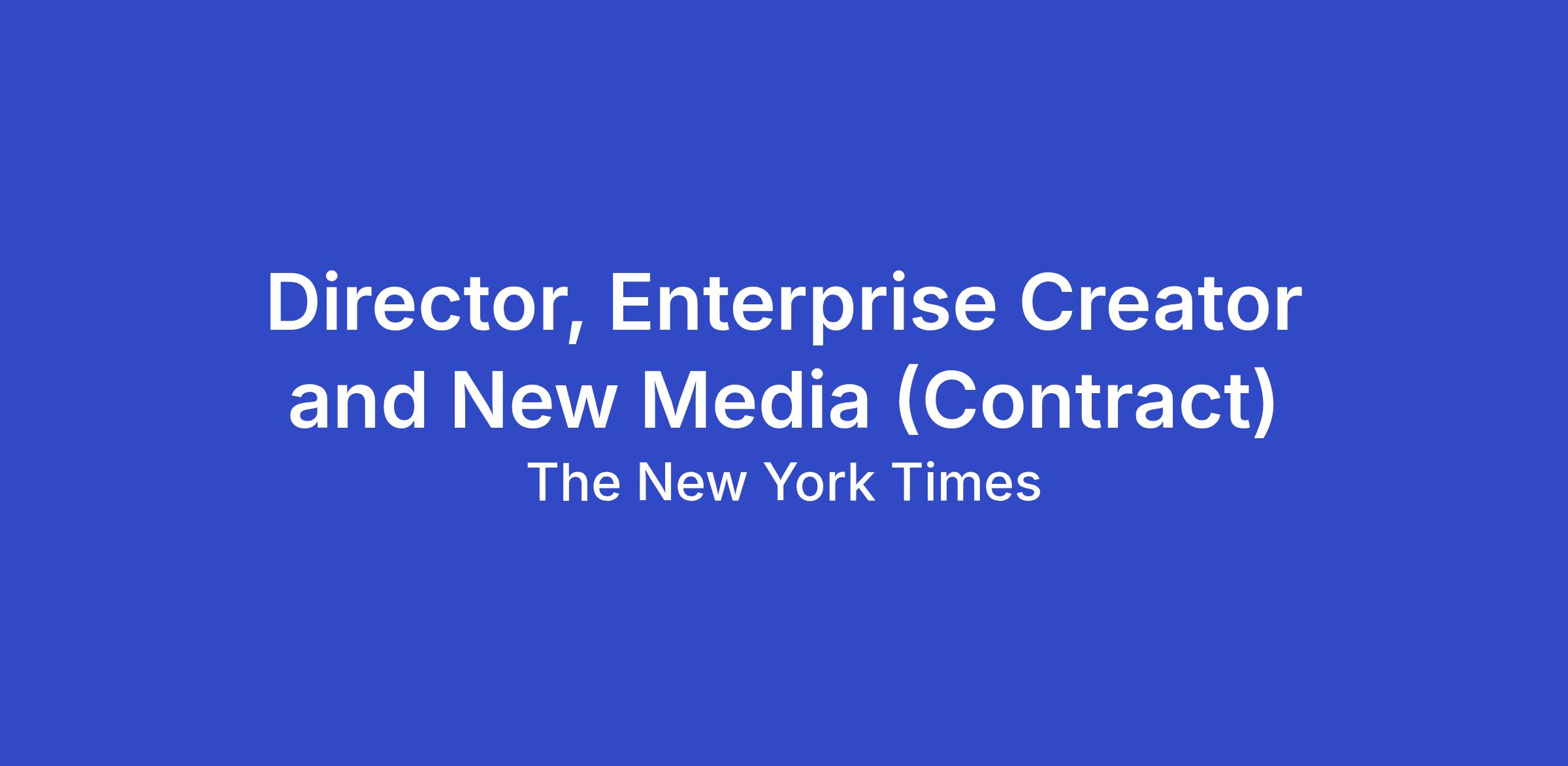 The Director, Enterprise Creator and New Media, sits in the marketing team and will also be part of a cross‑functional team evolving how The Times tells its story in the digital spaces where audiences discover news and culture. You will ensure that The Times is a primary resource for digital storytellers, expanding the reach of our journalism to new audiences while identifying opportunities to increase trust. You will partner with marketing, brand, communications, product and newsroom teams to guarantee a cohesive, standards‑driven approach to new media storytelling across the enterprise.