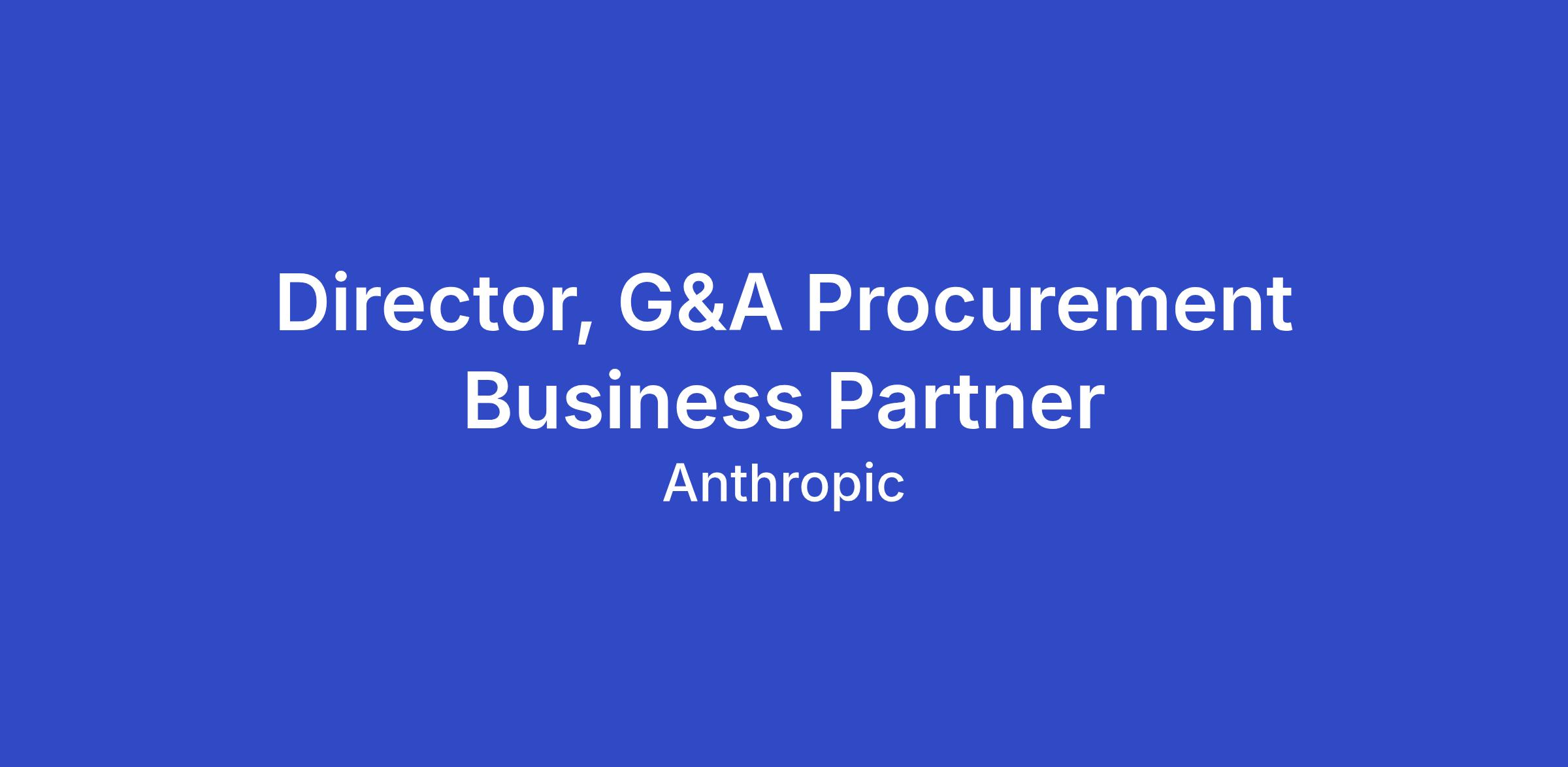 We're looking for a Director of G&A Procurement Business Partnership to serve as the strategic procurement owner across Anthropic's Finance, Legal & Policy, GTM, and People & Workplace verticals. This role reports to the Head of Procurement.