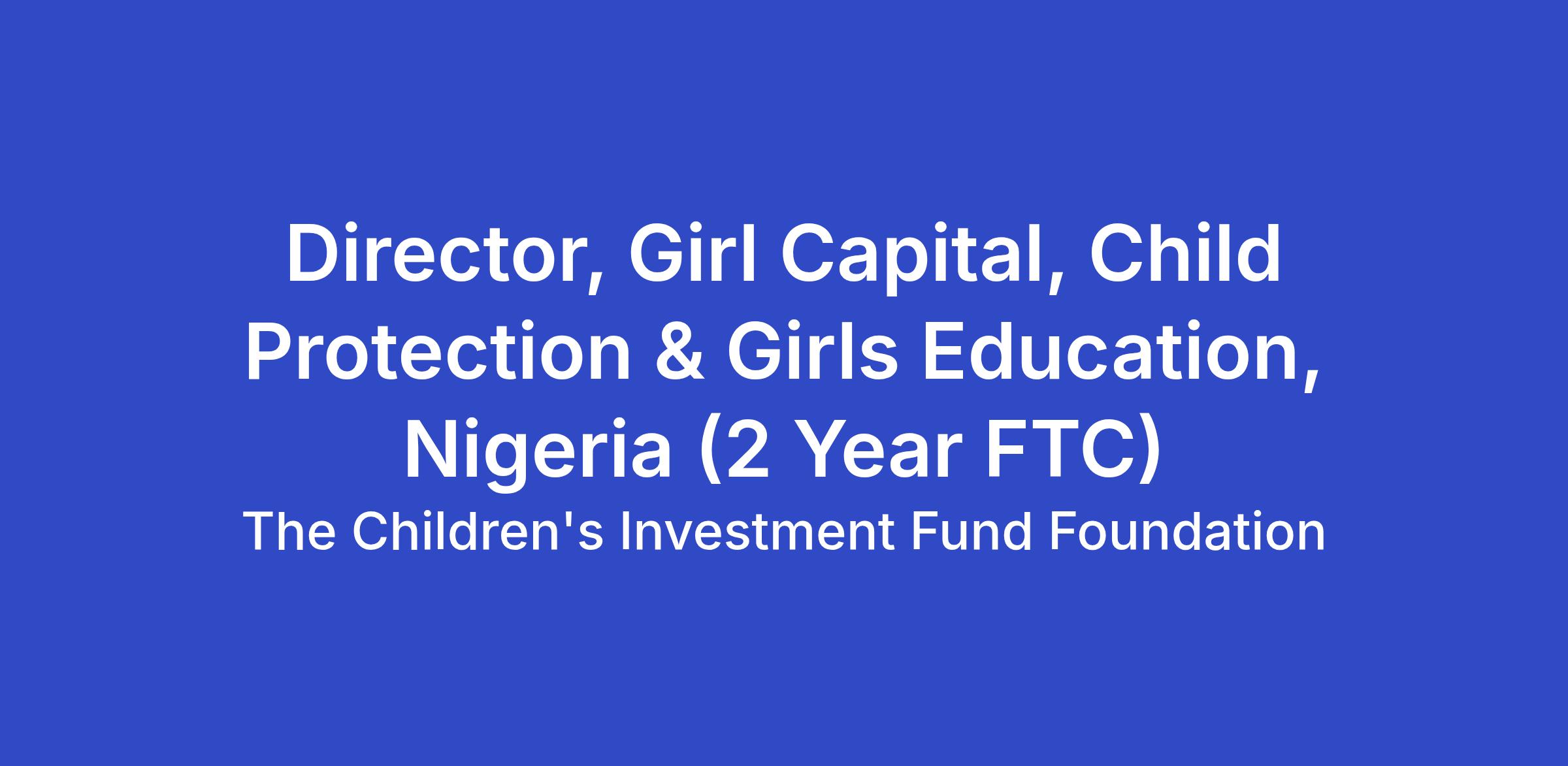 - Lead CIFF’s strategic direction on the intersection between child protection and Girls’ Education, with specific accountability for results achieved through the current and future investment portfolio in Nigeria.