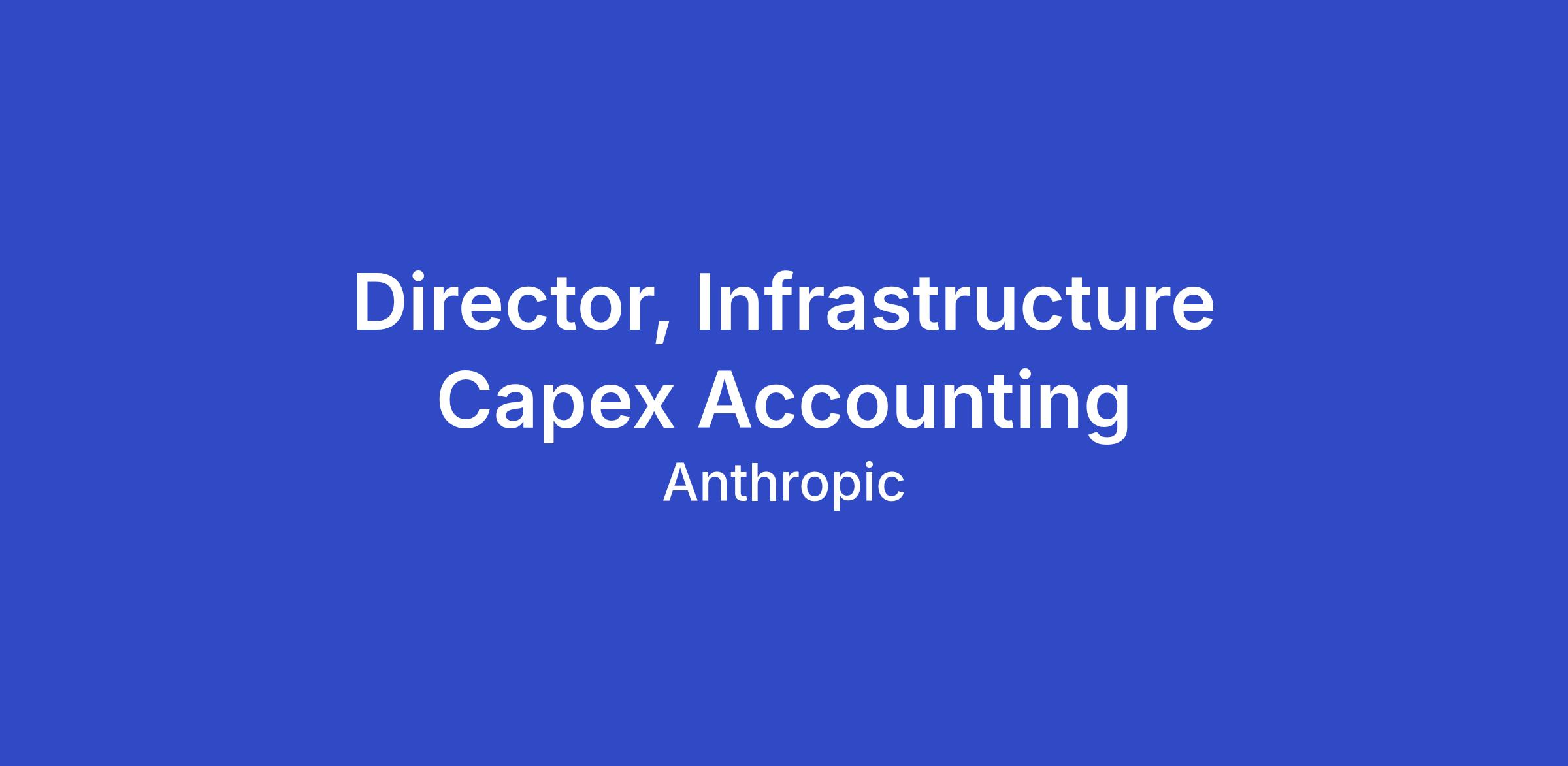 Anthropic is seeking a Director, Infrastructure Capex Accounting to join our Infrastructure Accounting team. In this role, you will lead accounting for a significant portion of Anthropic's owned infrastructure — network equipment, data center buildouts, and related capital assets underpinning our recently announced $50bn investment in American computing infrastructure. As we continue our rapid growth, you will help ensure the operational scalability and financial accuracy of the core functions that enable Anthropic's research and commercial success.