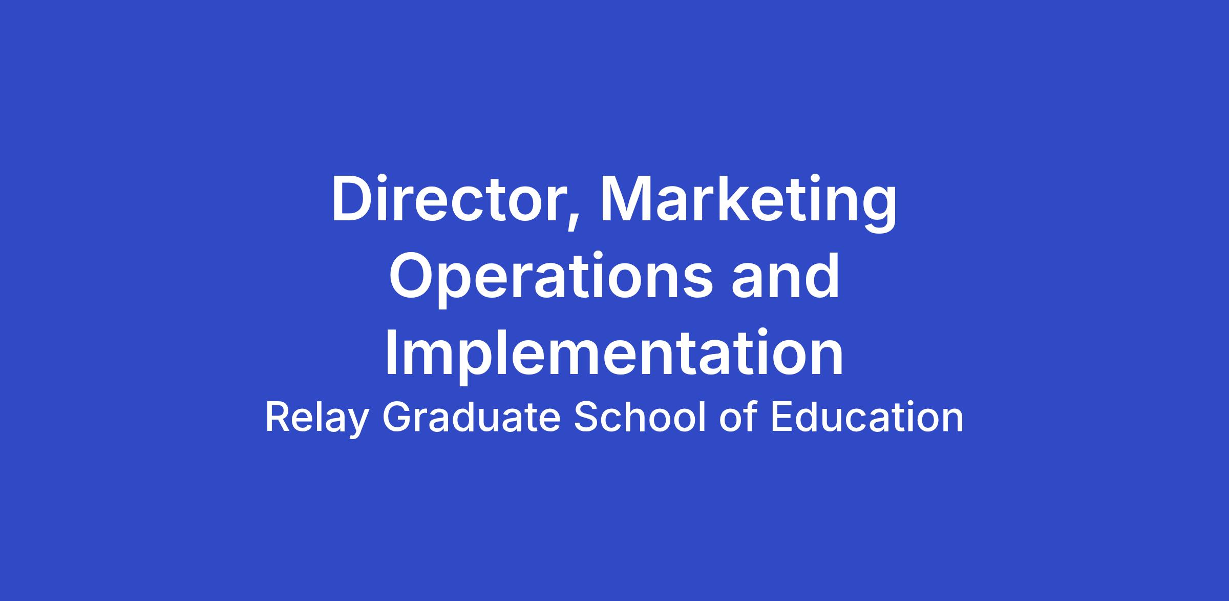 Director, Marketing Operations and Implementation