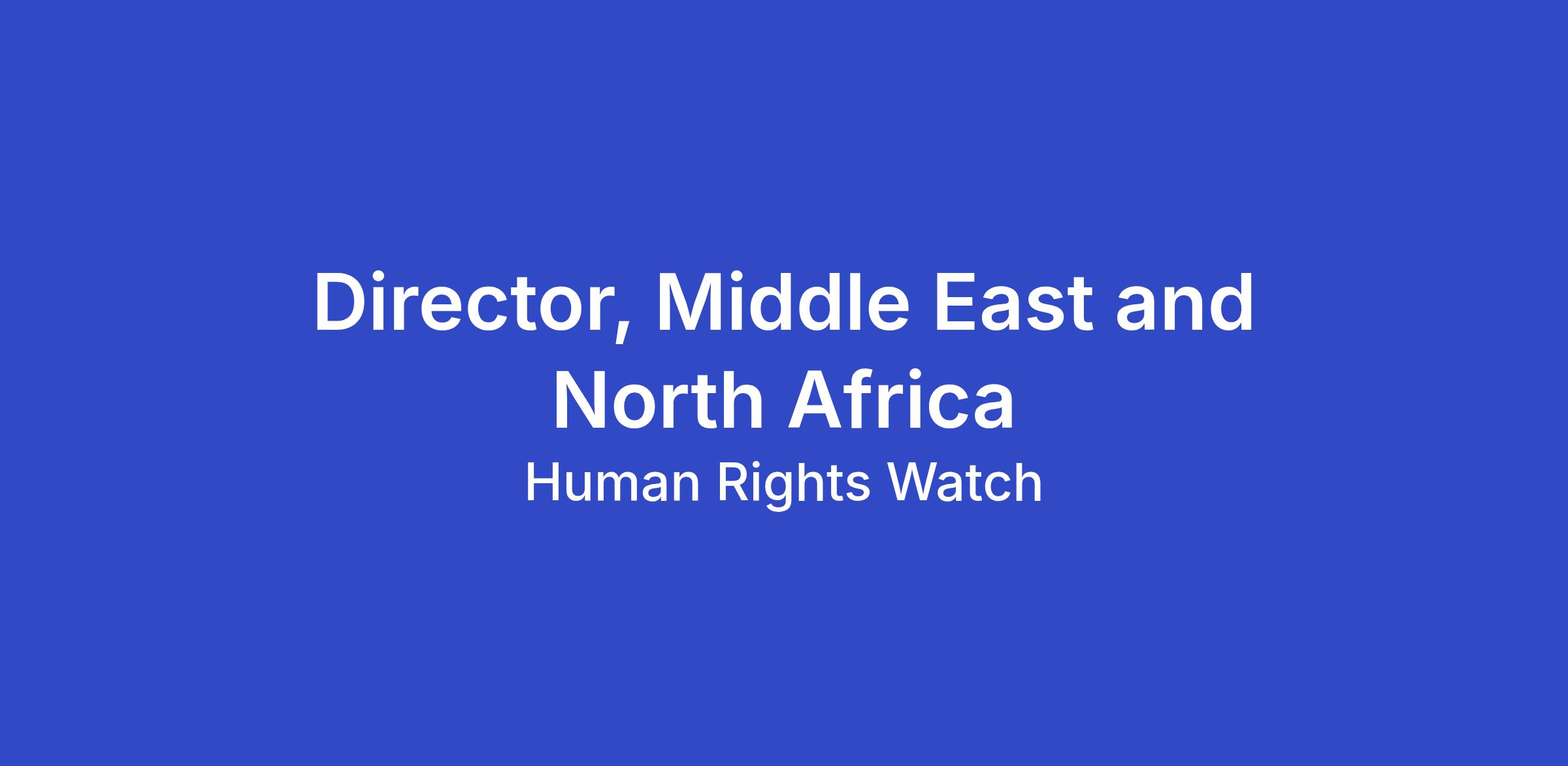 Human Rights Watch (HRW) is looking for an outstanding human rights professional for the role of Middle East and North Africa Director, one of six regional research programs in the Program Department.