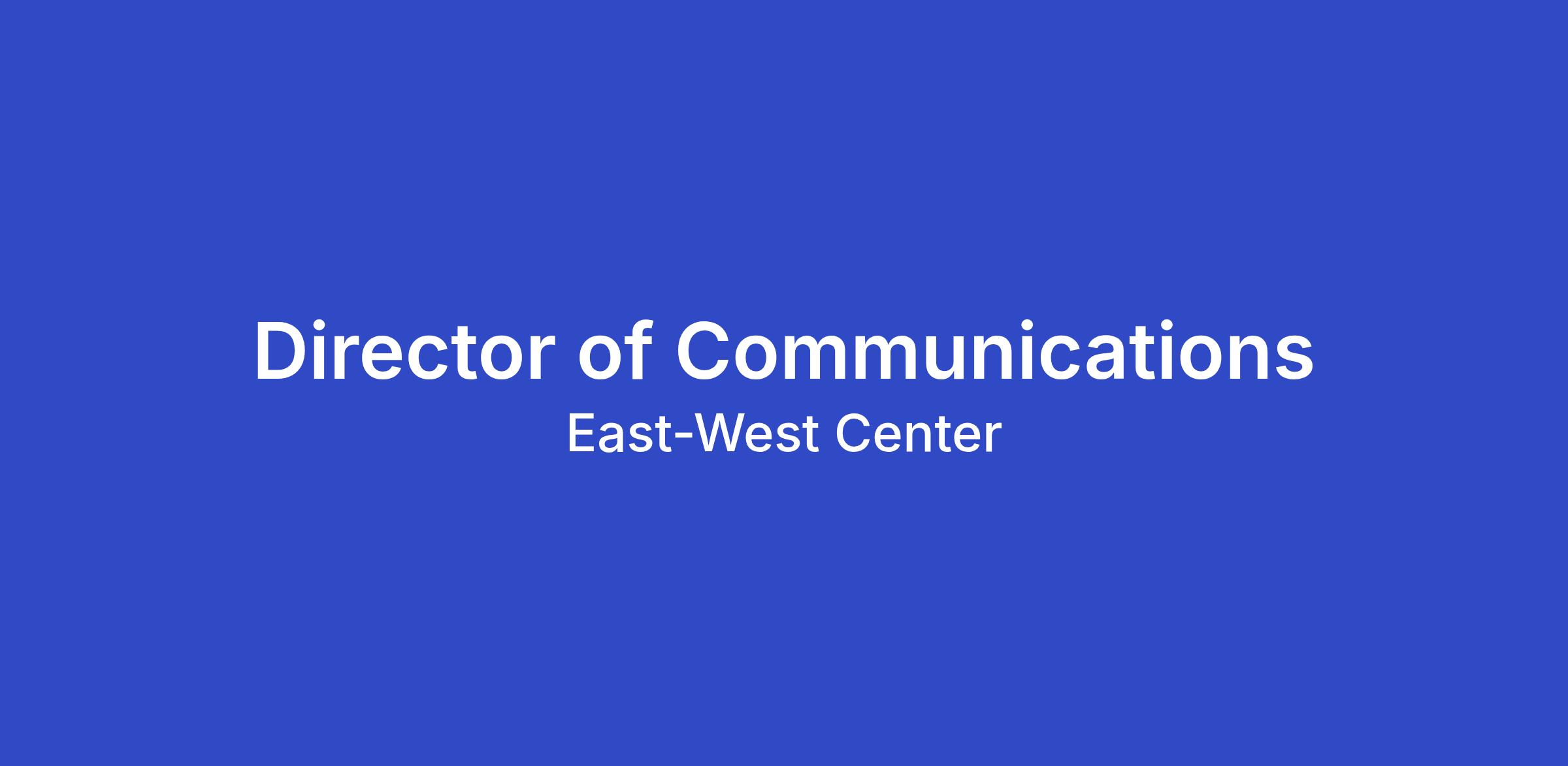 Experience – At least 10 years of work experience in developing and managing institutional communications for organizations providing international/intercultural programs that include programs in the field of journalism. Experience should include extensive knowledge of industry best practices for corporations, governments, and non-profit organizations, as well as an extensive network of and experience working with Hawaii-based stakeholders including foreign government representatives, state and federal representatives and officials, and local businesses. Experience should also reflect supervisory or management experience with a record of authority to make basic to complex daily decisions, perform operational and strategic planning tasks, manage finances and budgets, and work collaboratively a team/staff, as well as achievements in producing or overseeing production of policy-relevant publications, e-newsletters, and charts and graphics; and of serving as media spokesperson.