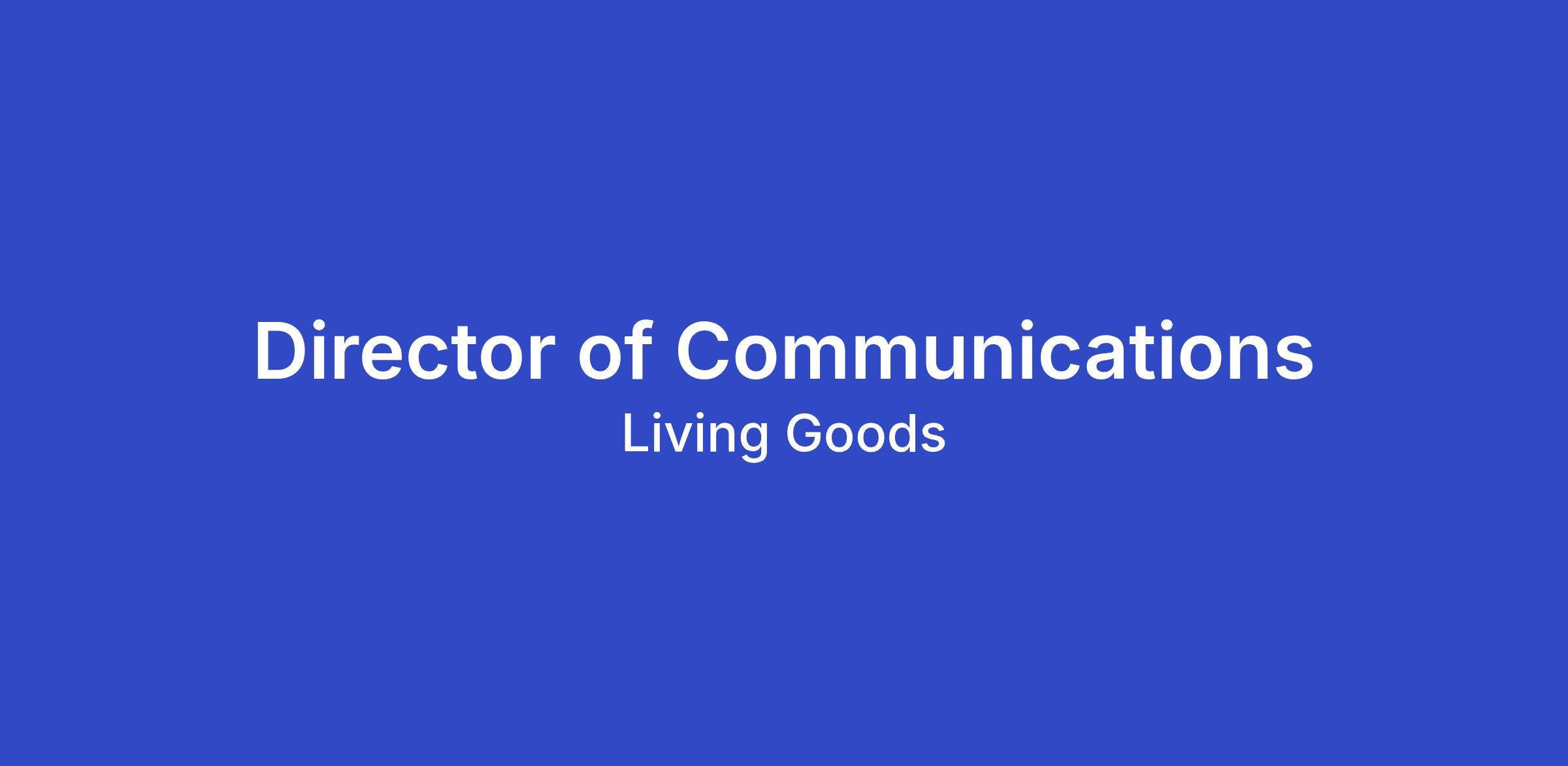 Role: Director of Communications Reports to: Chief of External AffairsDepartment: Business Development, Advocacy and Communications (BDAC)Location: Kenya, Uganda, or Burkina Faso or other locations that align with East Africa business hours. . (e.g. Europe or US East Coast)About Living Goods:Living Goods (LG) is a leading non-profit organization innovatively transforming the health of vulnerable communities. For over 15 years, Living Goods has worked alongside governments in Kenya, Uganda and Burkina Faso to strengthen community health systems so that frontline delivery works at scale. —continuously adapting to meet the needs of underserved communities. Today, as the global health funding landscape shifts and expectations for impact grow, Living Goods is evolving once again. Guided by deep experience and a commitment to innovation, we are entering a new phase focused on what we do best: partnering with government to build high-performing, scalable community health systems that deliver the health care services families need.Our forthcoming 2027–2030 strategy is designed to meet this moment. It centres on end-to-end performance optimisation—strengthening the foundations of government-led systems, institutionalising and scaling proven solutions, and developing new approaches to address emerging challenges. This includes harnessing the power of digital tools, data, and cutting-edge technologies such as AI to better support community health workers (CHWs) and the systems around them.Working in close partnership with governments, we aim to ensure CHWs are equipped with the tools, supervision, and data-driven insights needed to deliver high-quality care at scale. By 2030, Living Goods will support governments in three core countries to enable 50,000 CHWs to reach 25 million people—contributing to at least a 10% reduction in under-five and maternal mortality.About the Role:Living Goods is seeking a visionary Director of Communications to shape and drive its global communications strategy, including leading the launch of a refreshed brand and unified messaging framework aligned with the organization’s new strategic plan. This role calls for a proactive, hands-on strategic leader who can collaborate across teams to elevate the organization’s brand, amplify its external presence, and ensure consistency of messaging.The Director will play a central role in positioning Living Goods as a thought leader in advancing community health, working closely with internal teams and external partners to highlight the impact of our approaches. Reporting directly to the Chief of External Relations, this senior leadership position will serve as a trusted advisor to the executive team and a key driver in strengthening Living Goods’ visibility and influence worldwide.Key Responsibilities:Strategic Communications- Develop and execute a strategic communications plan that elevates visibility, strengthens brand awareness, and amplifies influence across global, Africa regional, and country-level markets, including Kenya, Uganda, and Burkina Faso.