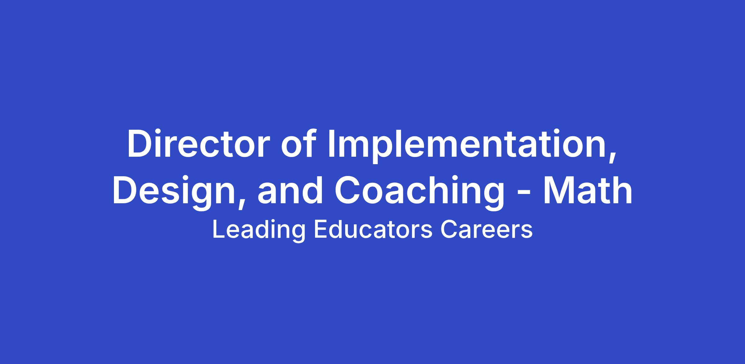 Leading Educators is seeking a Director of Implementation, Design, and Coaching - Math to lead transformational work across New York City public schools. In this hybrid leadership role, you'll own the full lifecycle of math implementation—from launch through measurable impact—while building sustainable systems that shift instructional practice at scale.